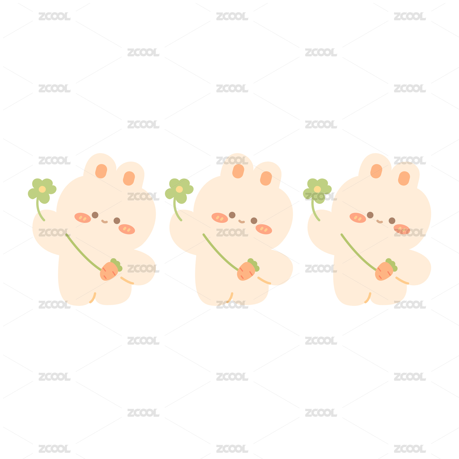 三只爱吃萝卜的可爱小兔子举着花花矢量图案