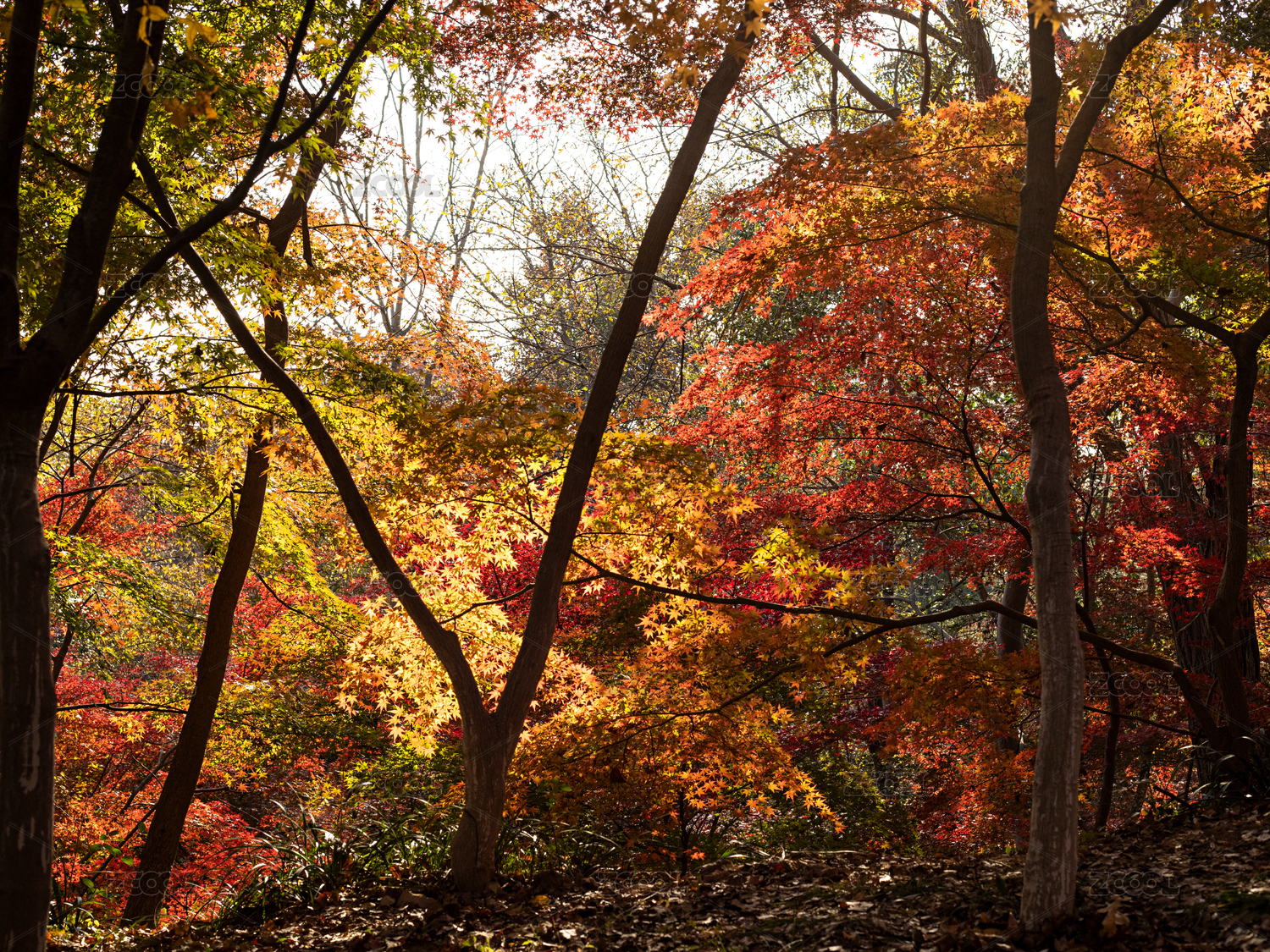 11月江苏南京中山植物园红枫岗赏秋枫叶