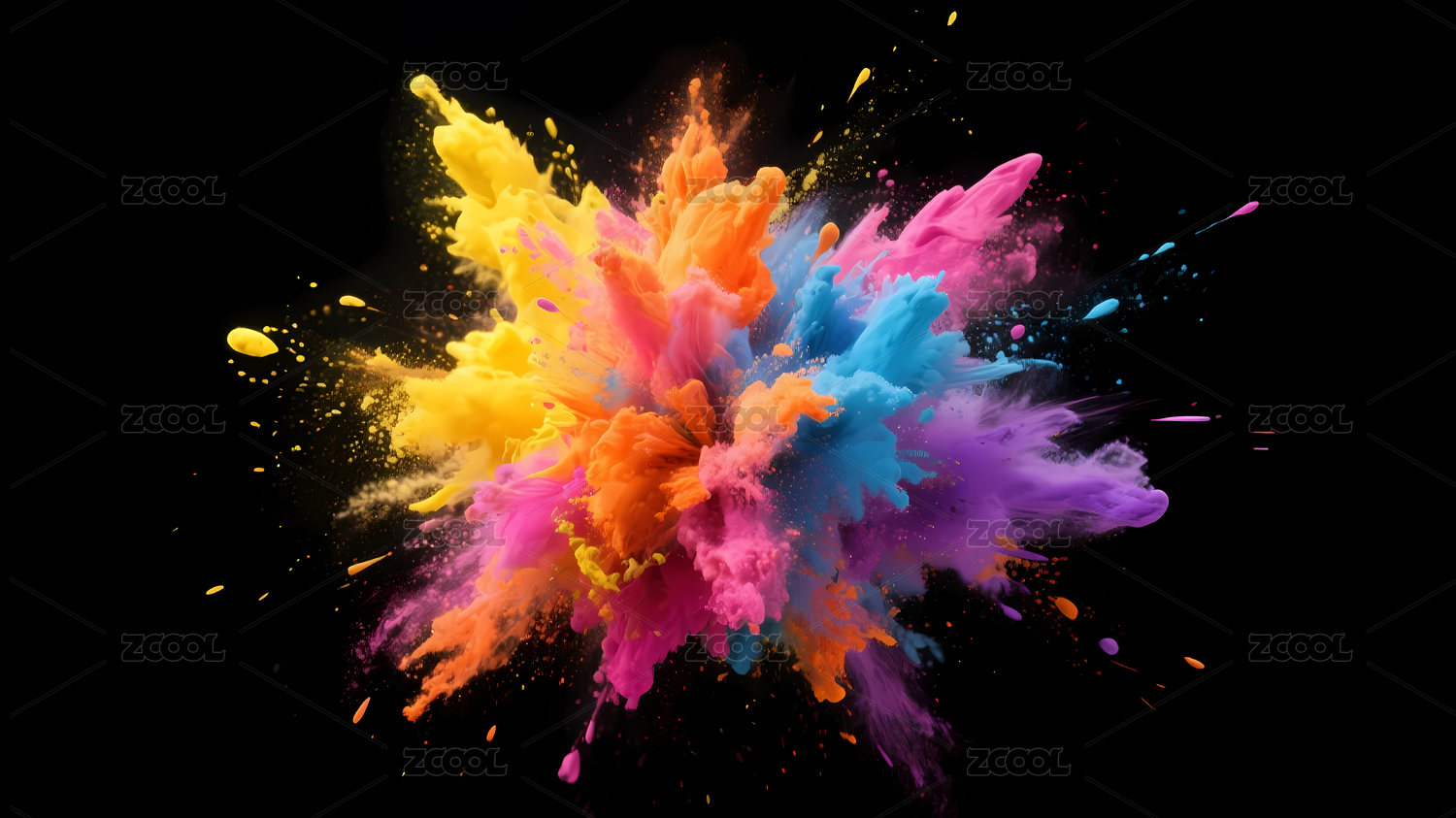 多彩颜料在黑色背景飞溅 抽象背景素材
