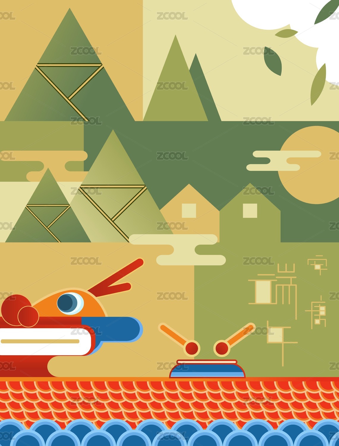 端午节粽子与龙舟氛围感简约海报