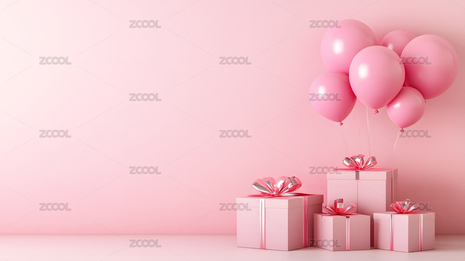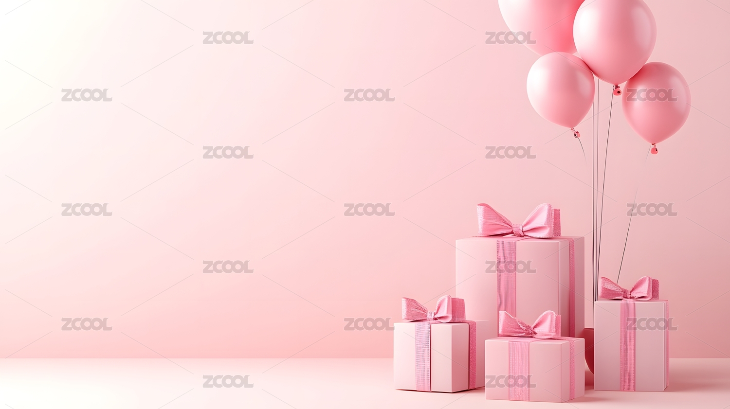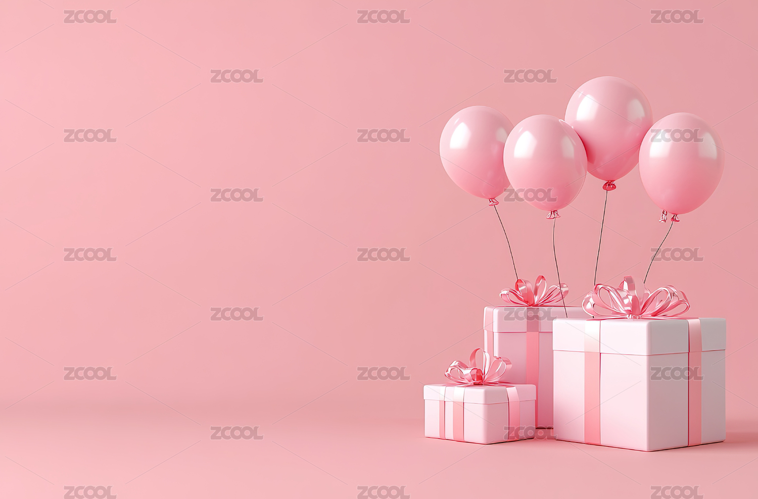 粉色气球与礼物盒