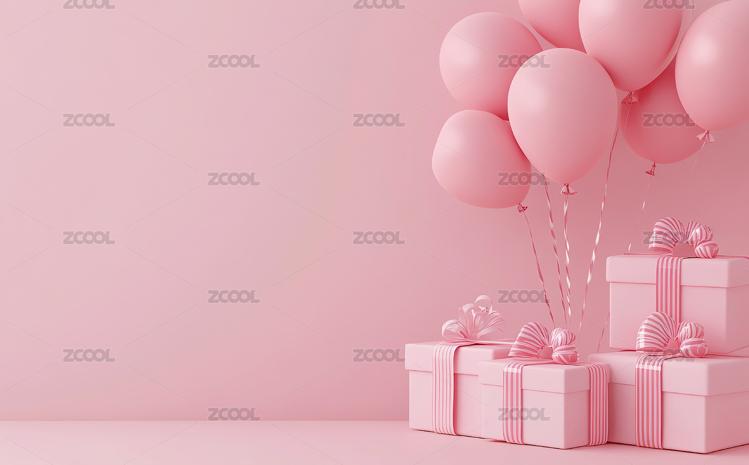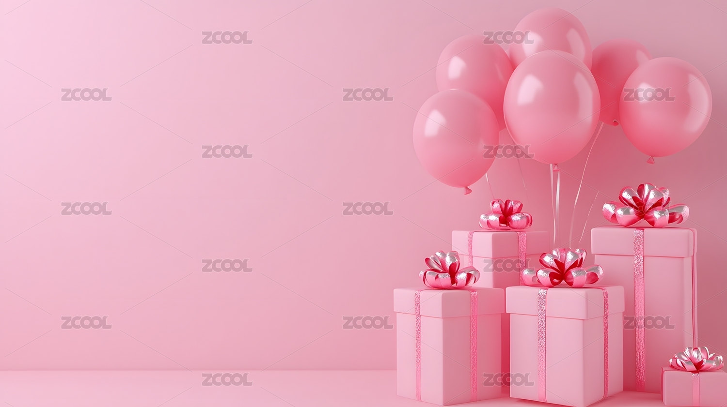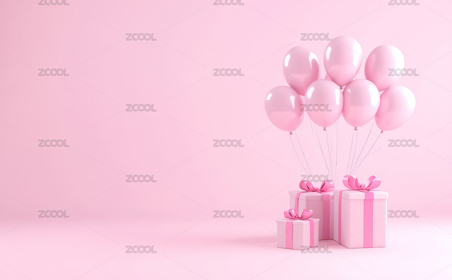 粉色气球与礼物盒