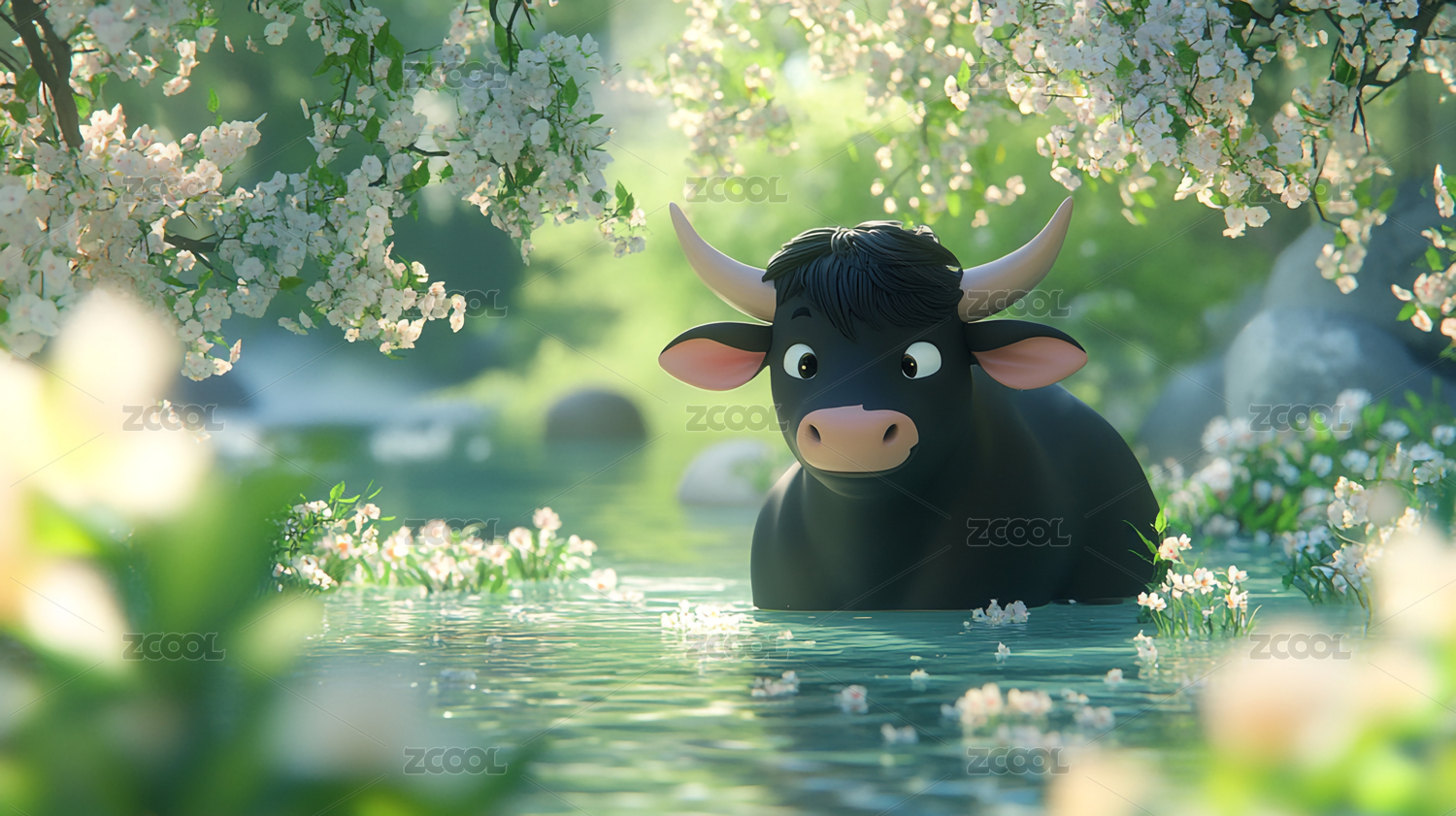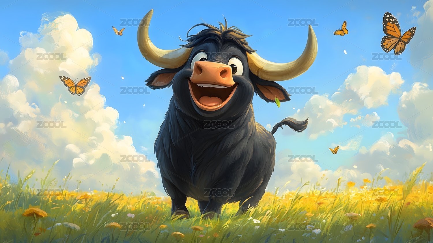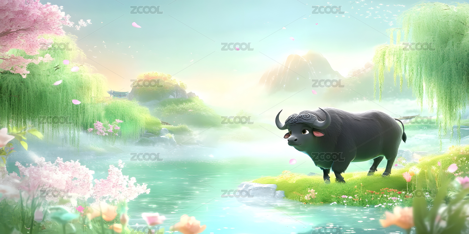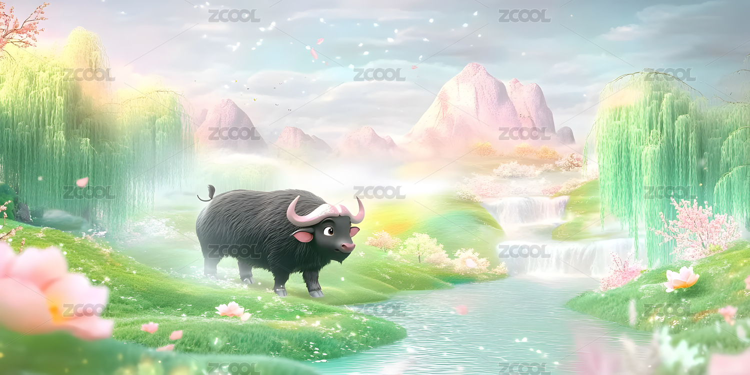 黑牛,水牛,牛,梦幻,背景板,海报,壁纸,插画