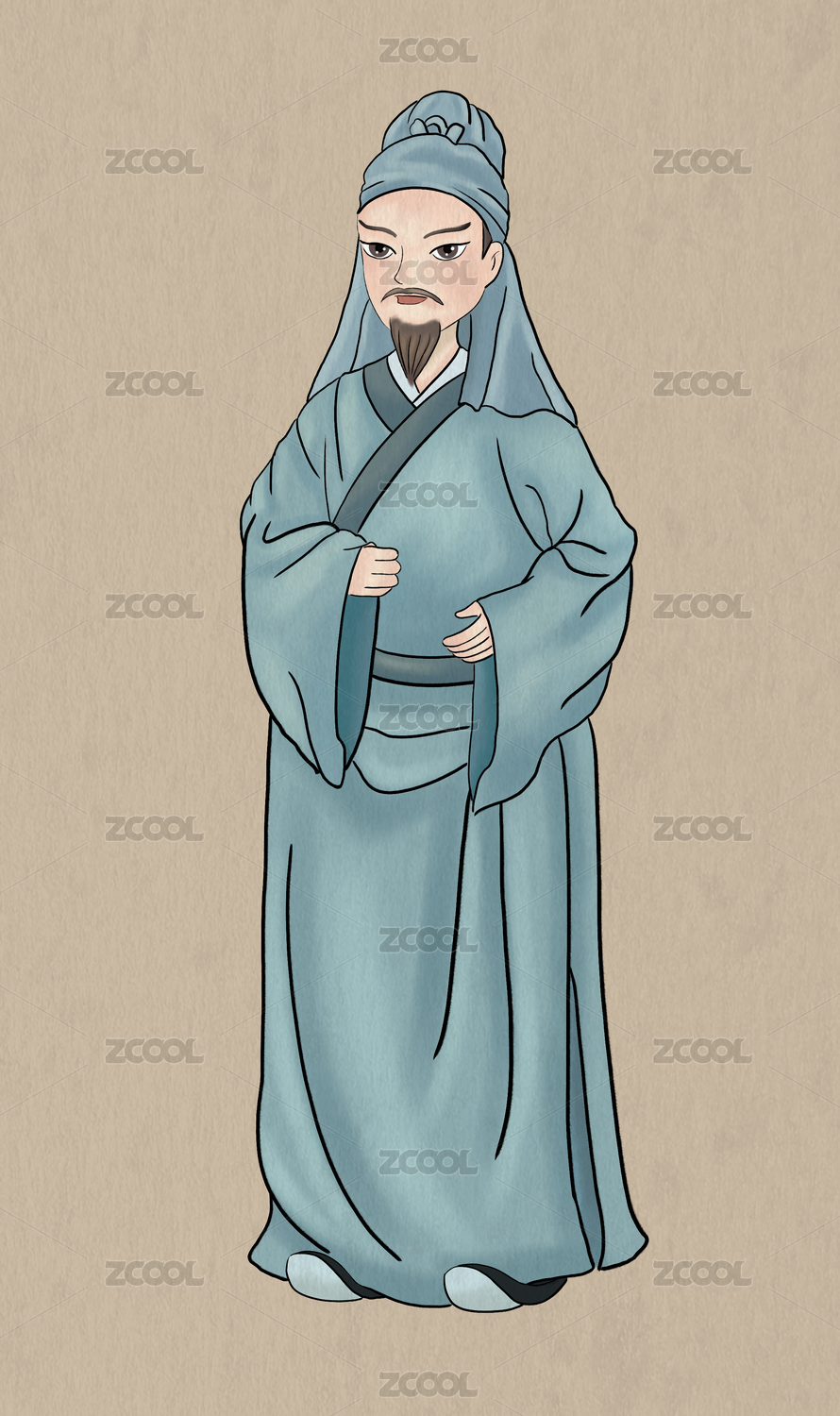 卡通古装中年男子
