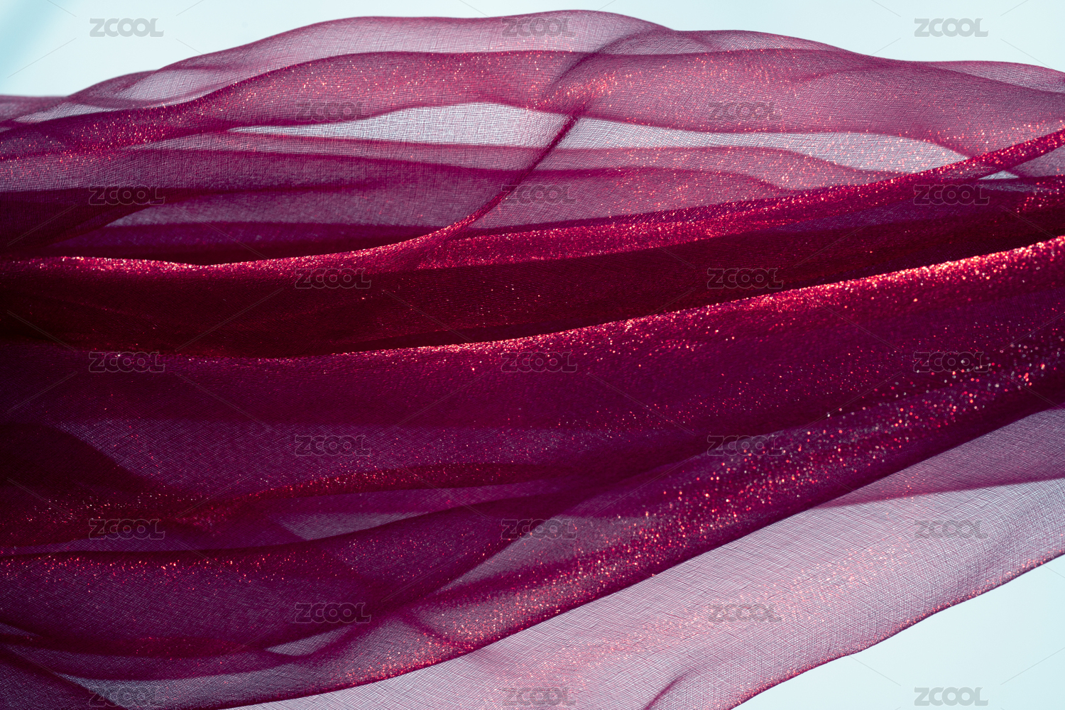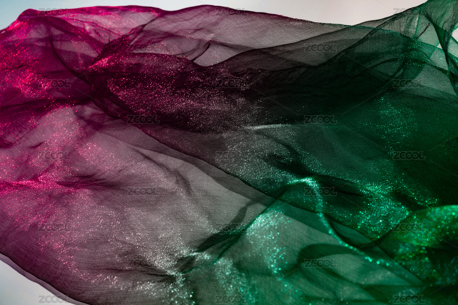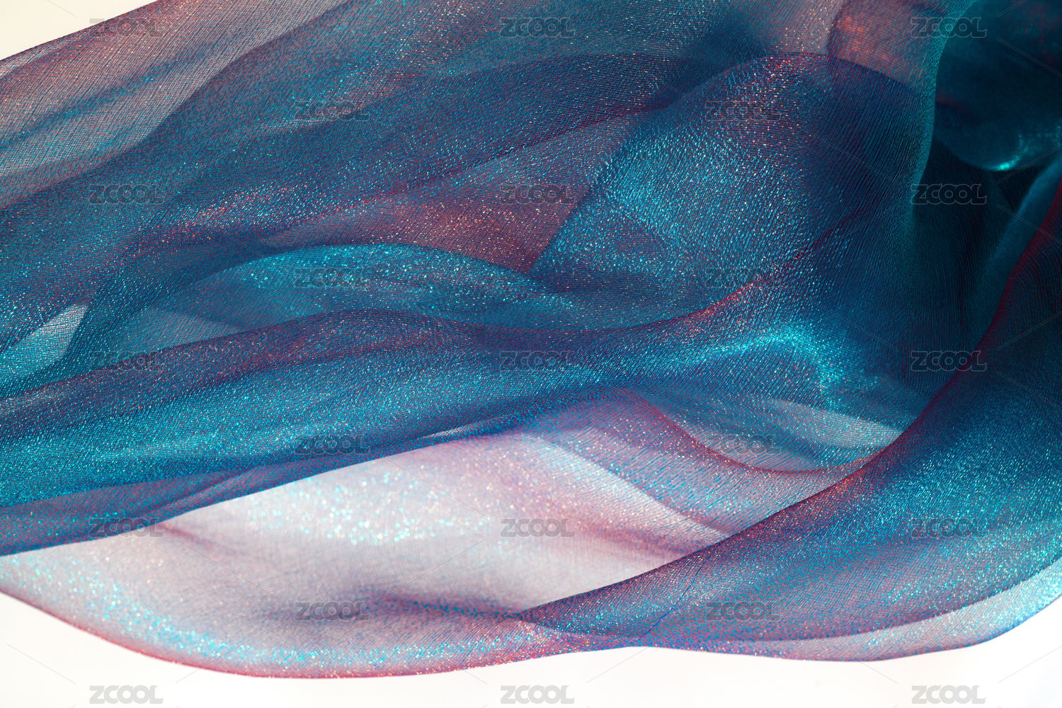 灯光照射着充满褶皱的质感轻纱