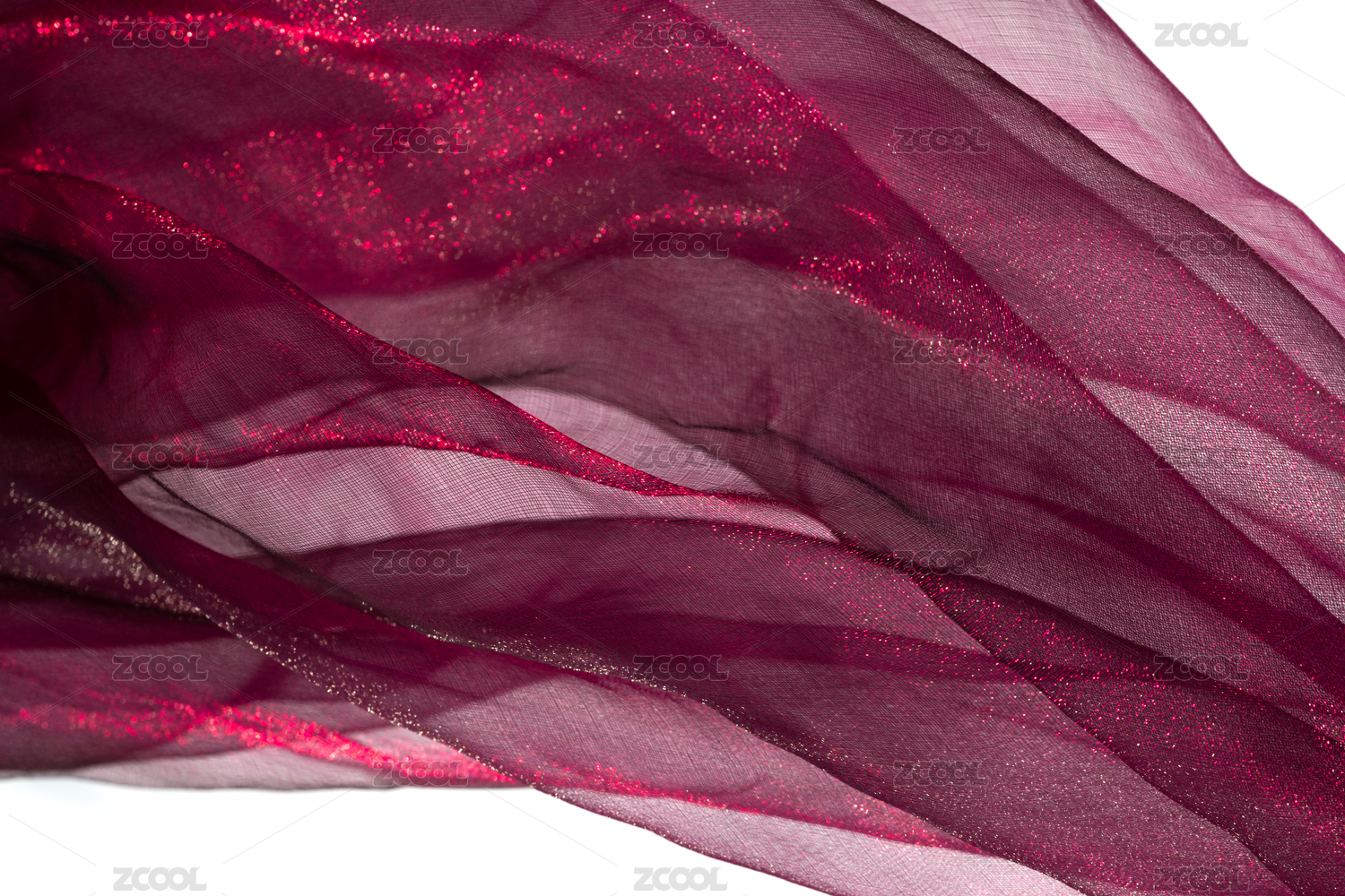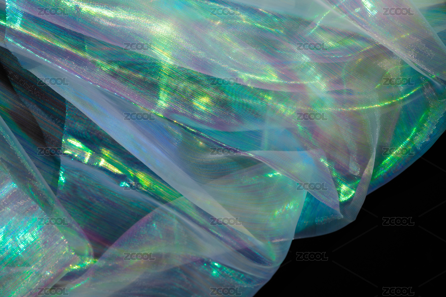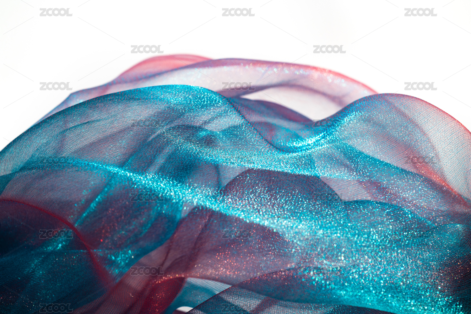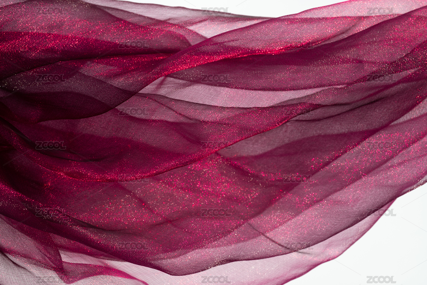 灯光照射着充满褶皱的质感轻纱