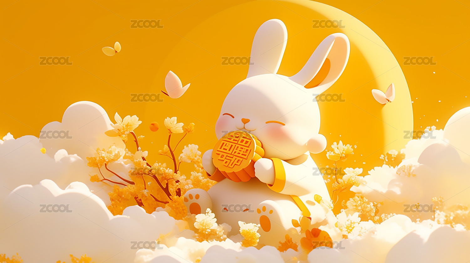 中秋,中秋节,月亮,月,圆月,蓝色,兔子,可爱,3d,卡通