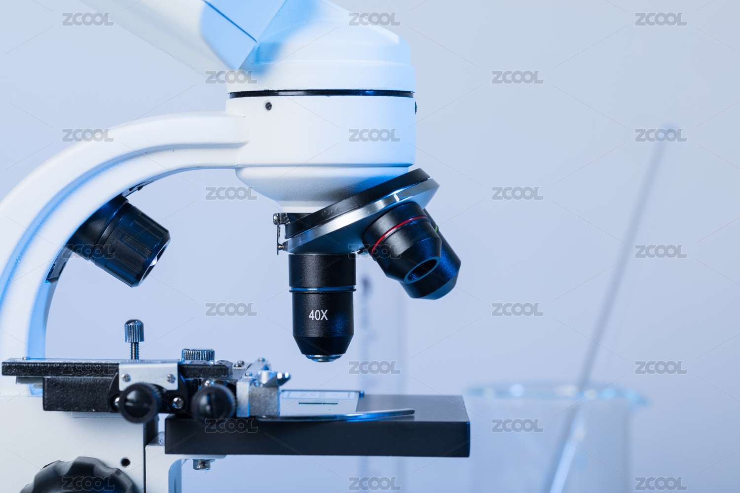白色背景的显微镜侧面特写