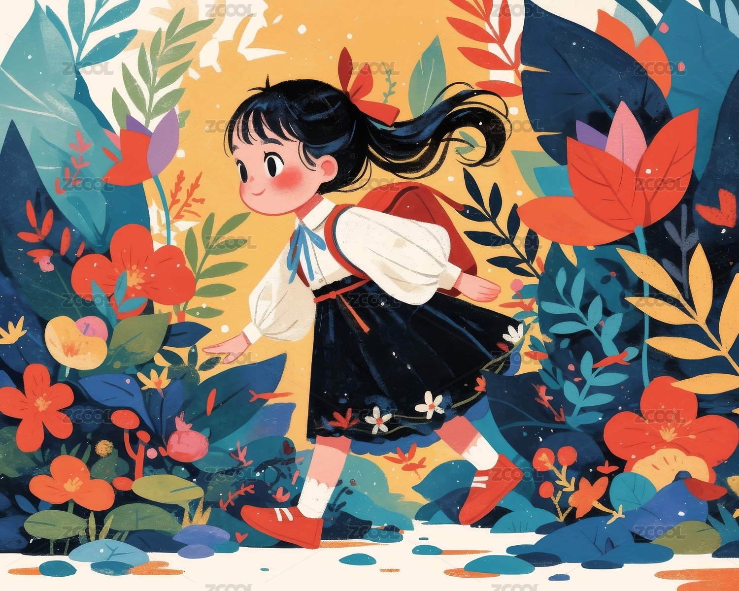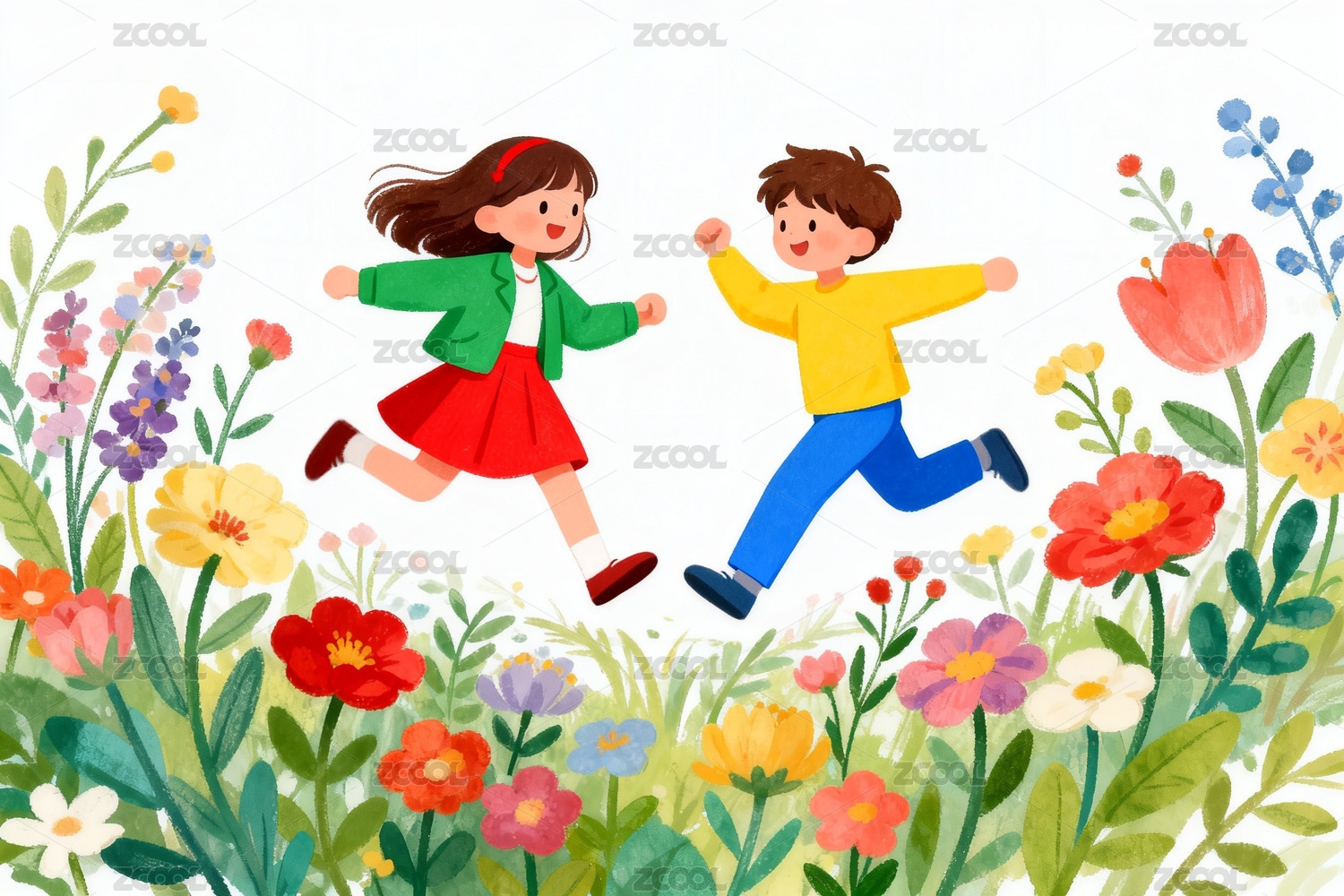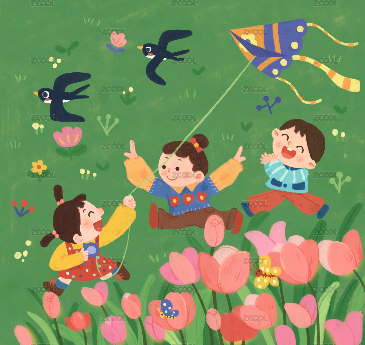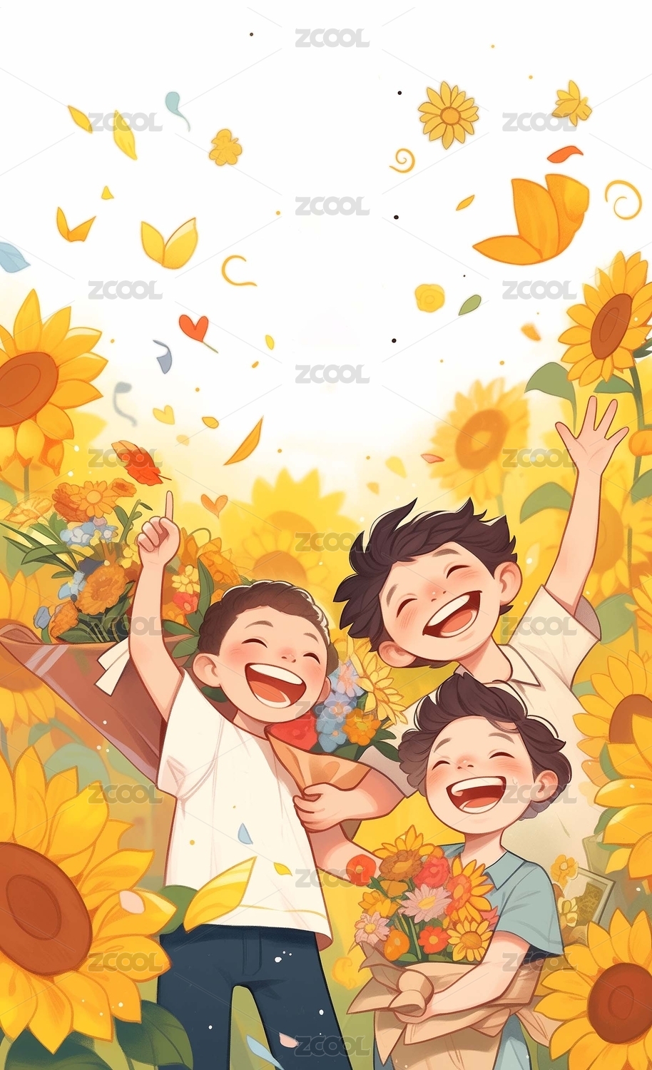六一儿童节小孩玩气球插画快乐童年活动海报