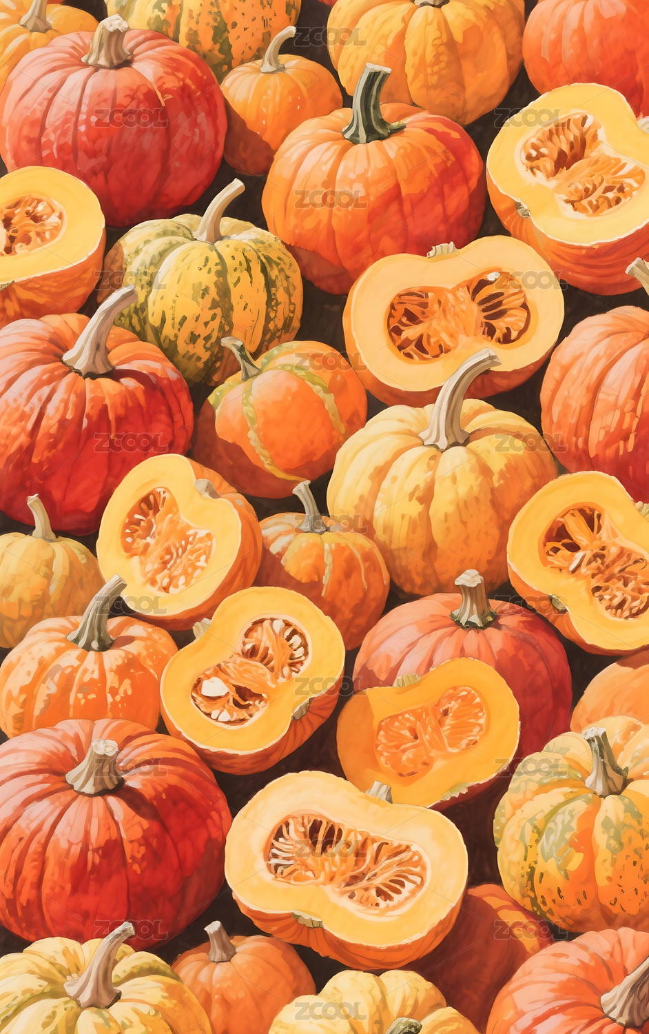 秋天成熟的黄色南瓜四方连续无缝拼接背景