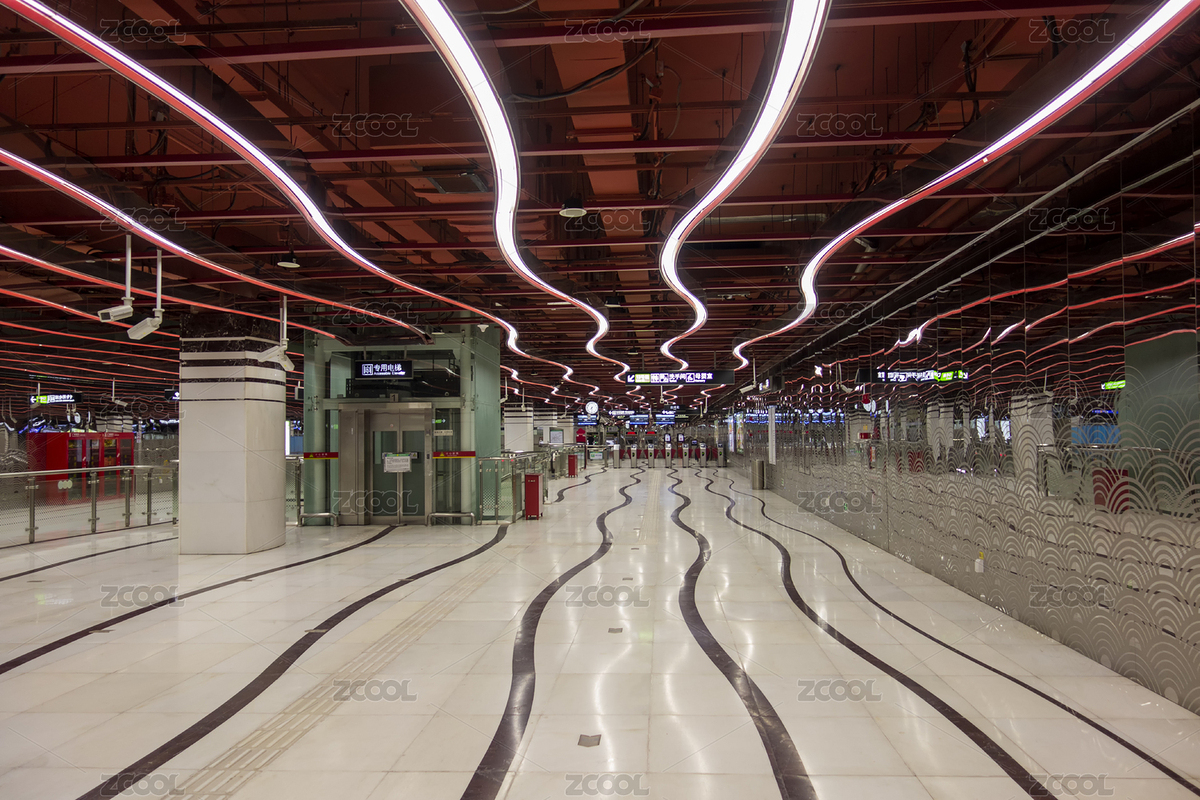 宽敞明亮的广州地铁车站内部场景