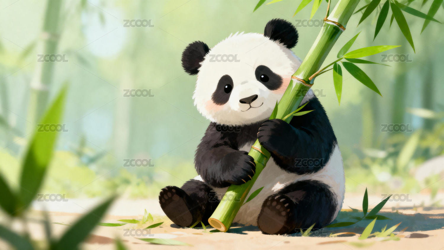国风,熊猫,动物,国宝,可爱,背景,竹子,插画,设计,保护动物