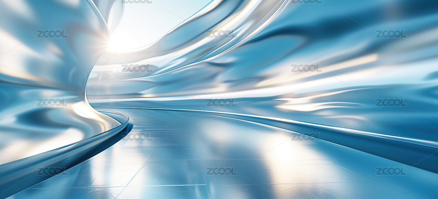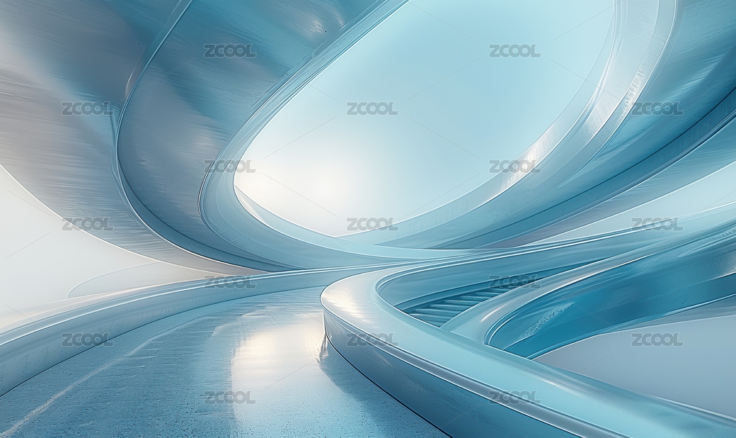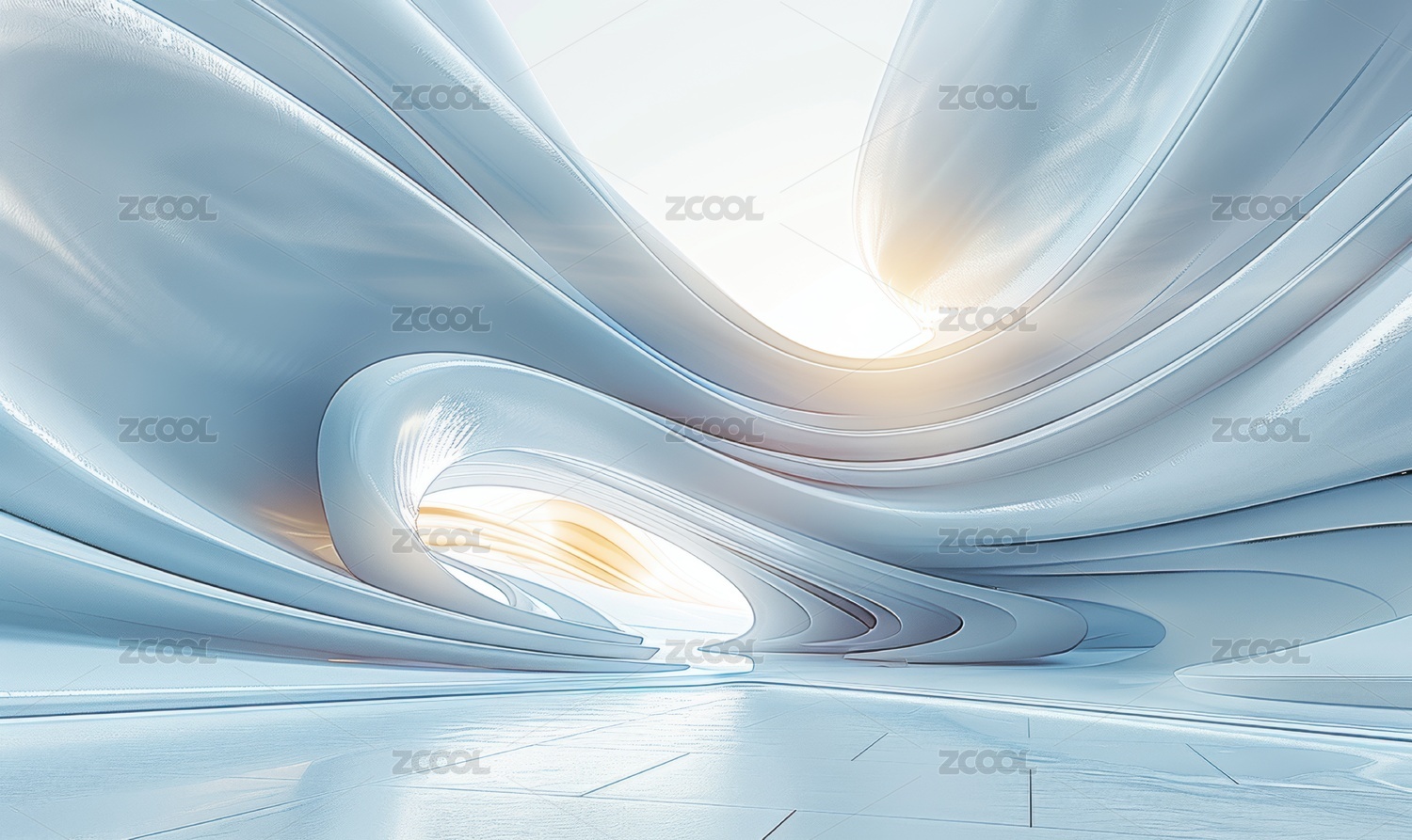 白色浅蓝梦幻曲线空间抽象未来艺术