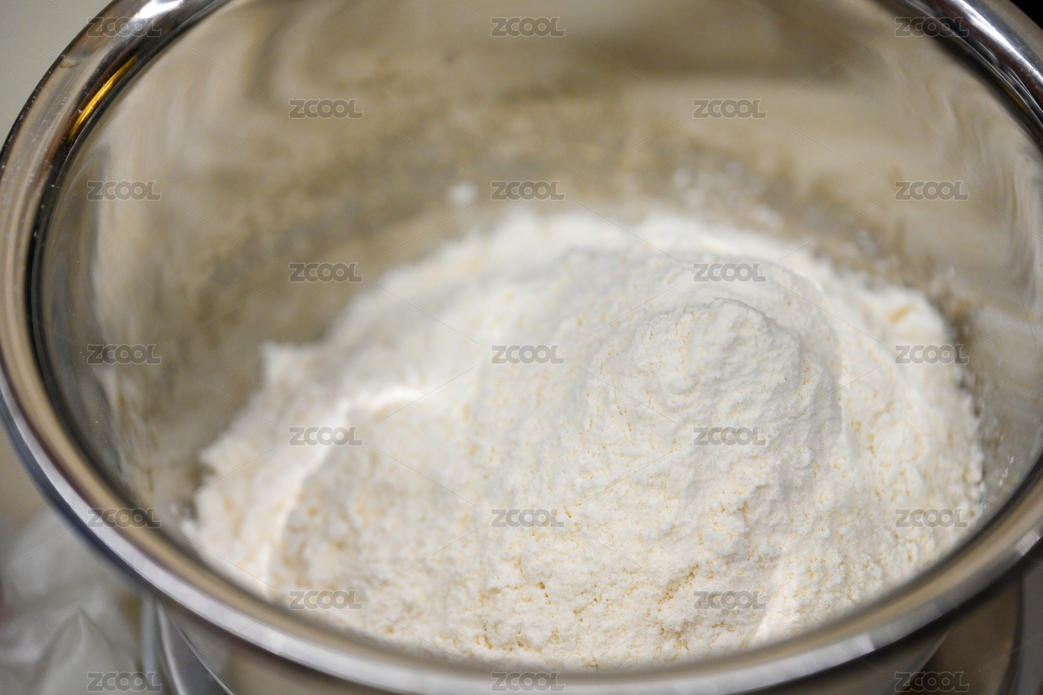 不锈钢碗中的面粉