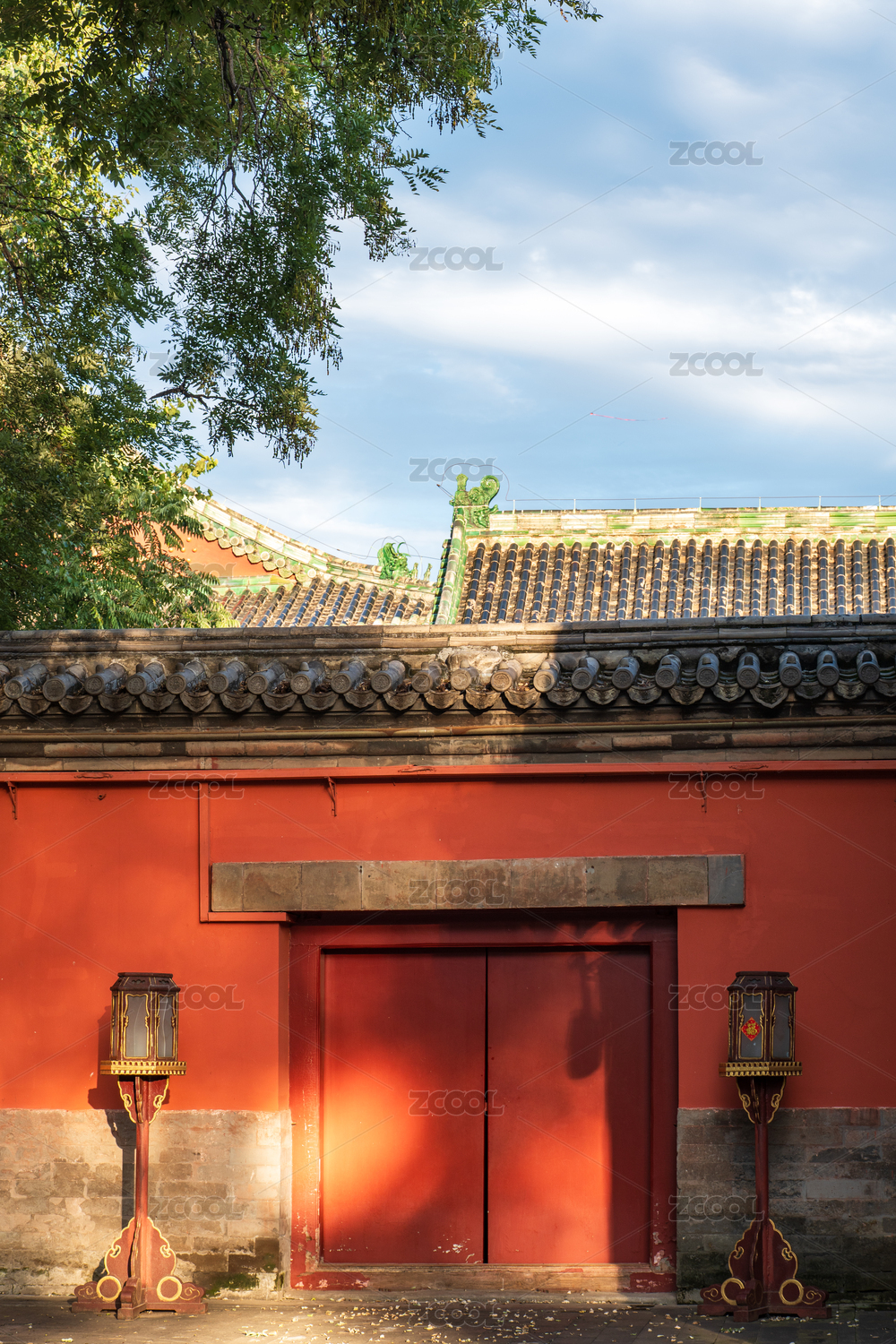 中式传统庭院红墙朱门