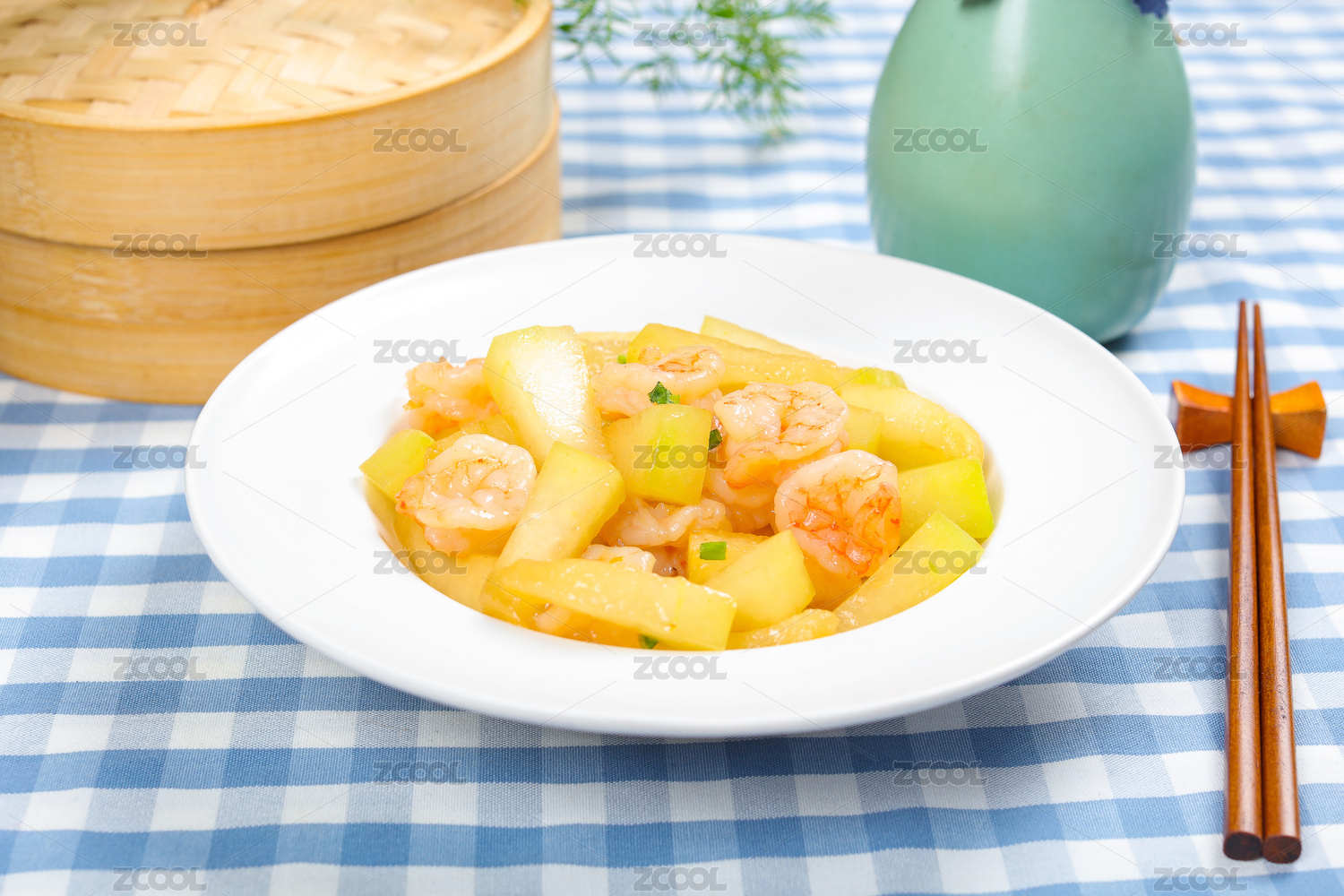 家常小炒菜肴虾仁烩冬瓜