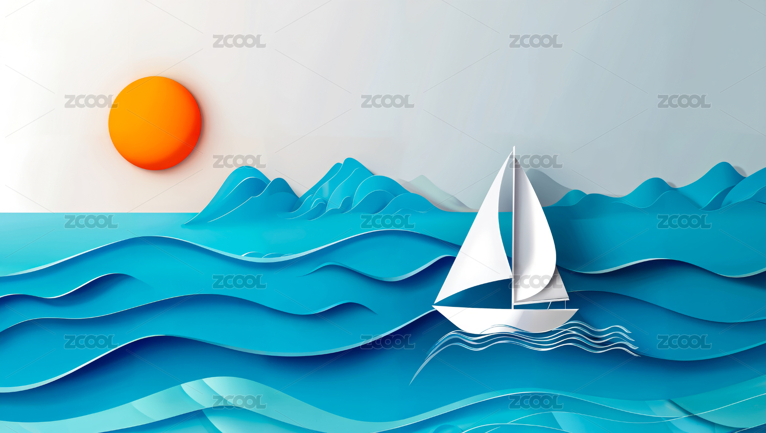 剪纸堆叠风格中国风山水轻舟已过万重山意境插画