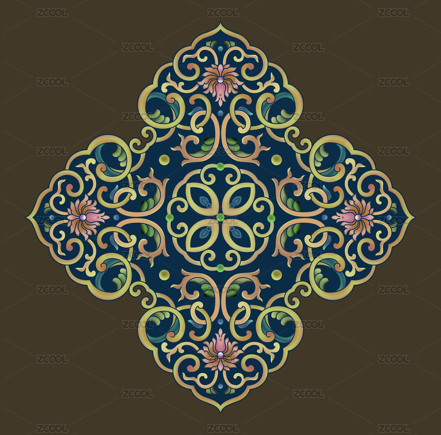 中国传统的中式圆形花纹装饰图案