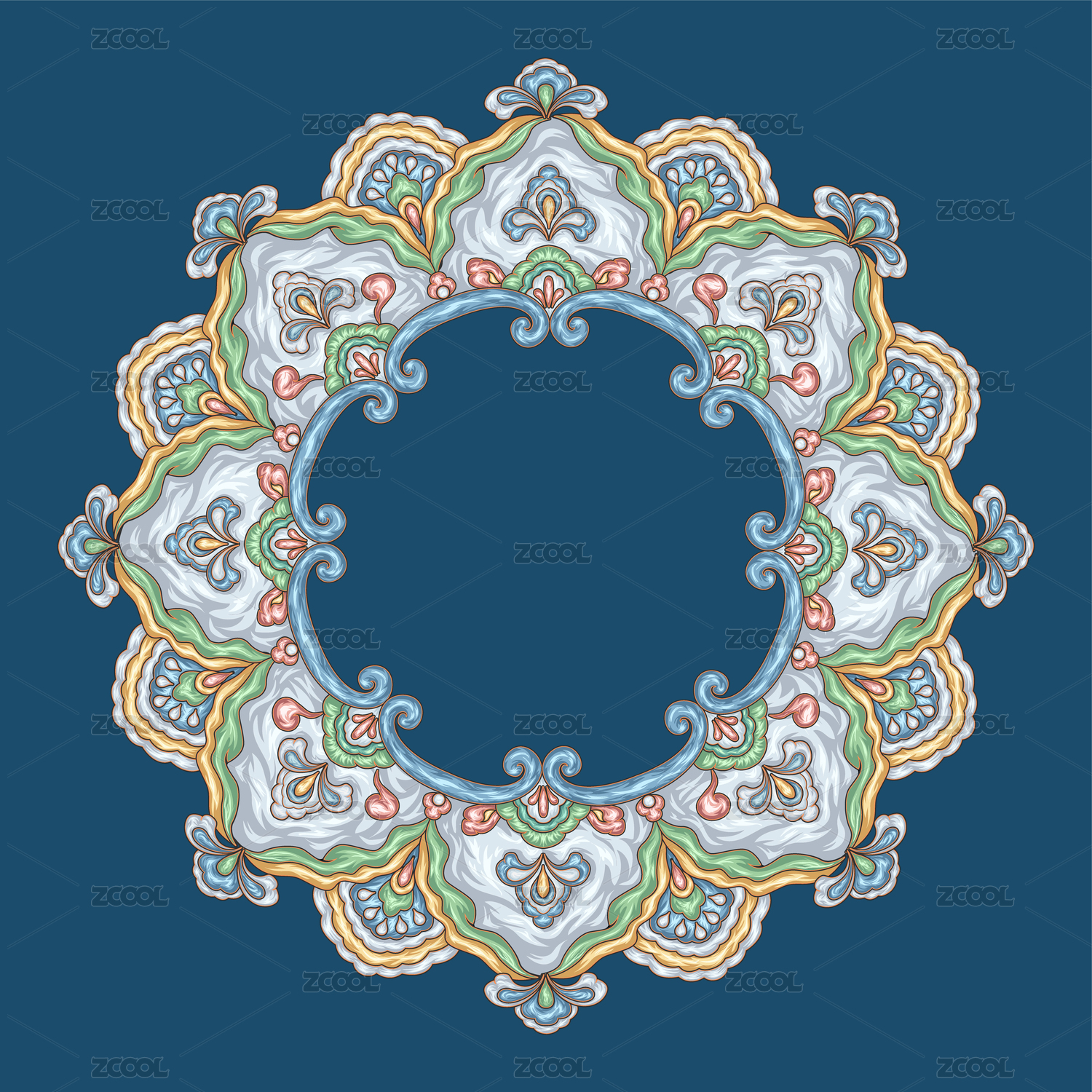 传统的圆形彩色花边装饰花纹图案