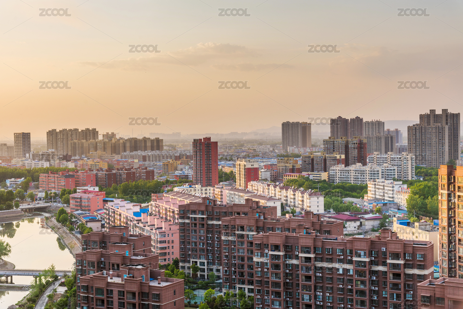 江苏省淮安市盐河穿城而过的淮阴区城市风光