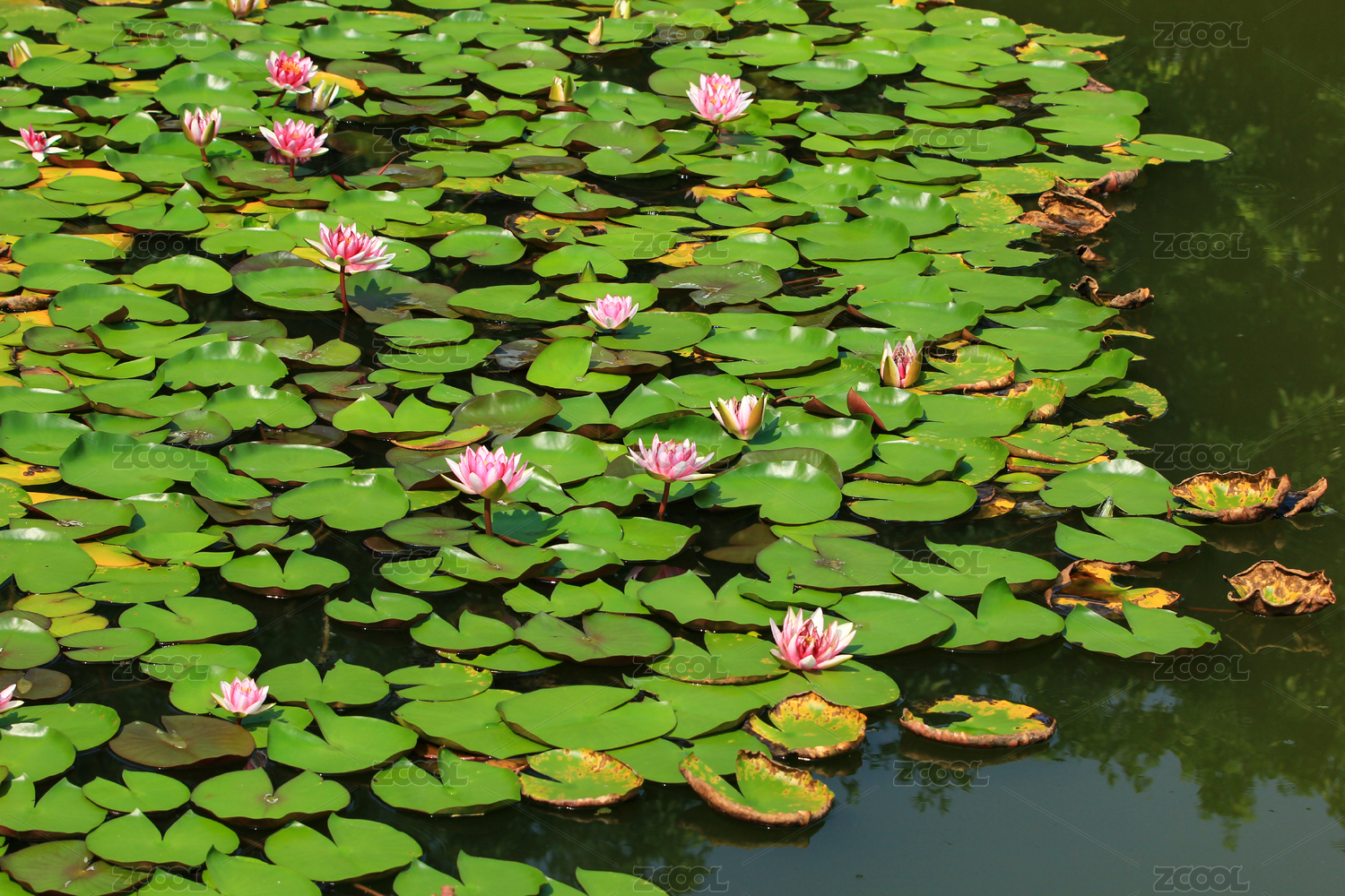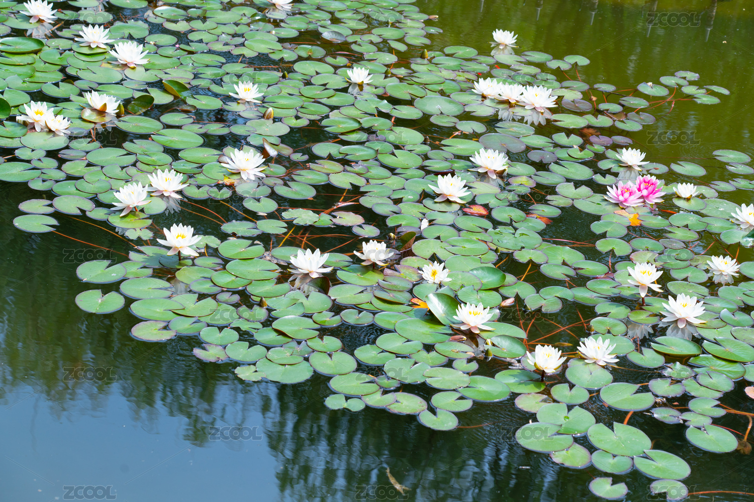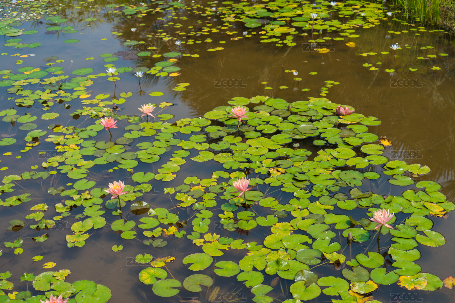 夏天池塘里绿色植物睡莲荷花风景的背景图