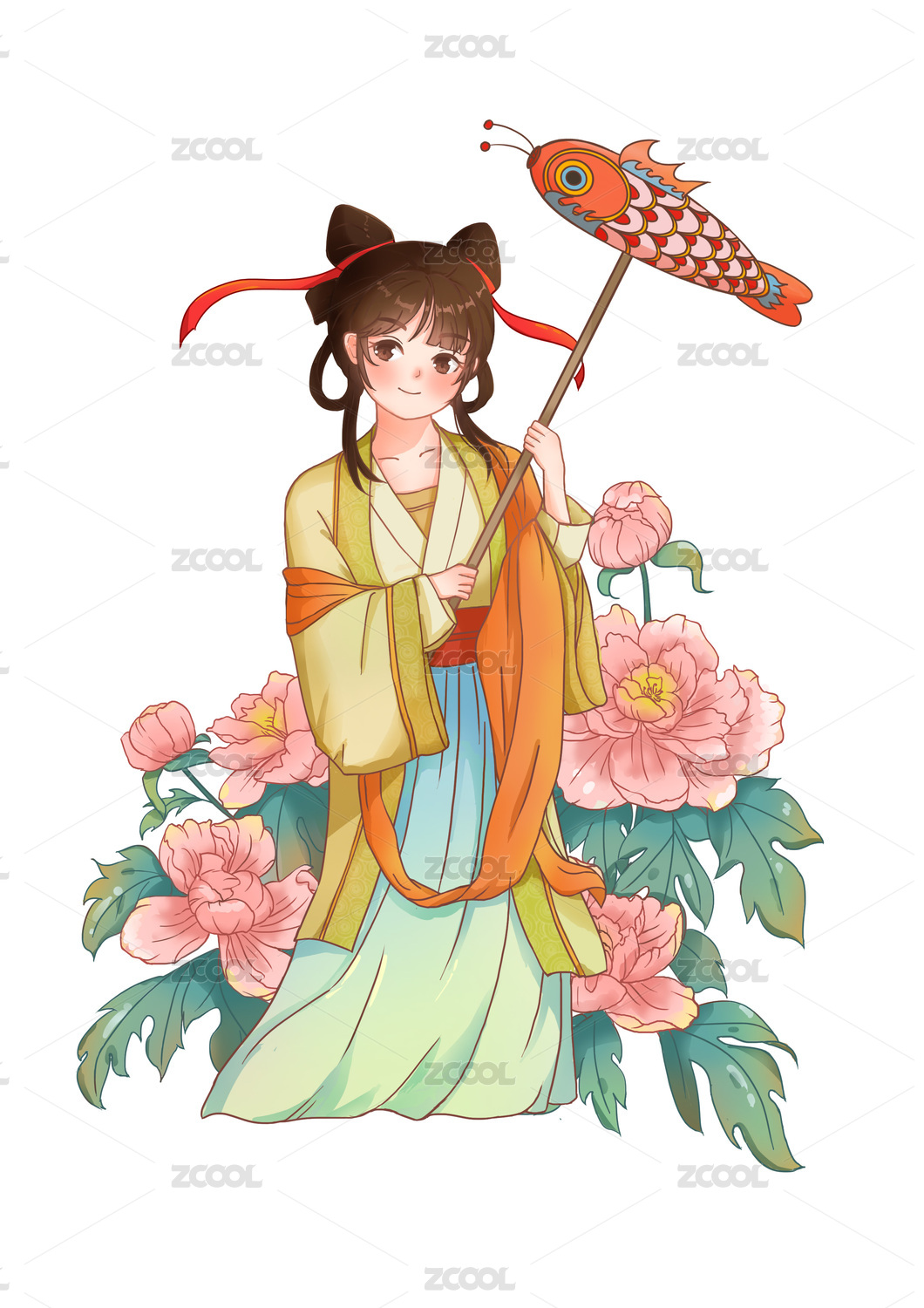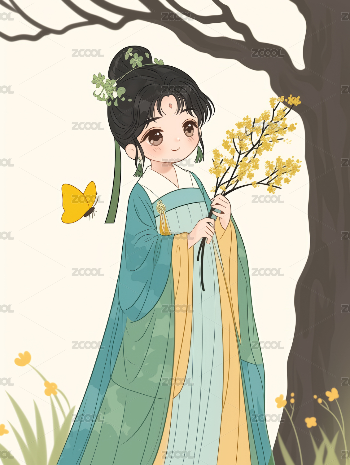 古风国潮汉服美女节日节气花朵荷梅水仙牡丹