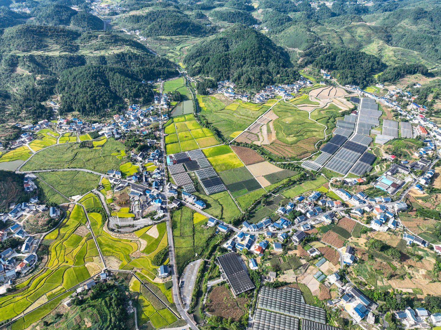 俯瞰南方农村水稻田风光