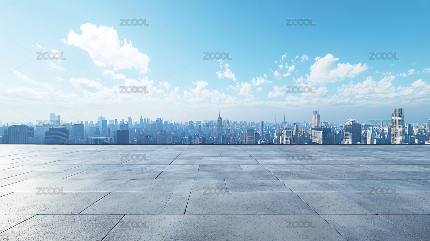 现代建筑大面积干净地面城市天际线背景