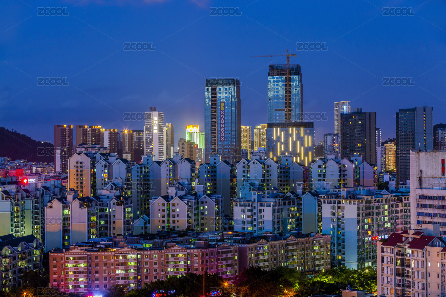 中国福建省福州市夜晚灯光城区高楼建筑环境景观