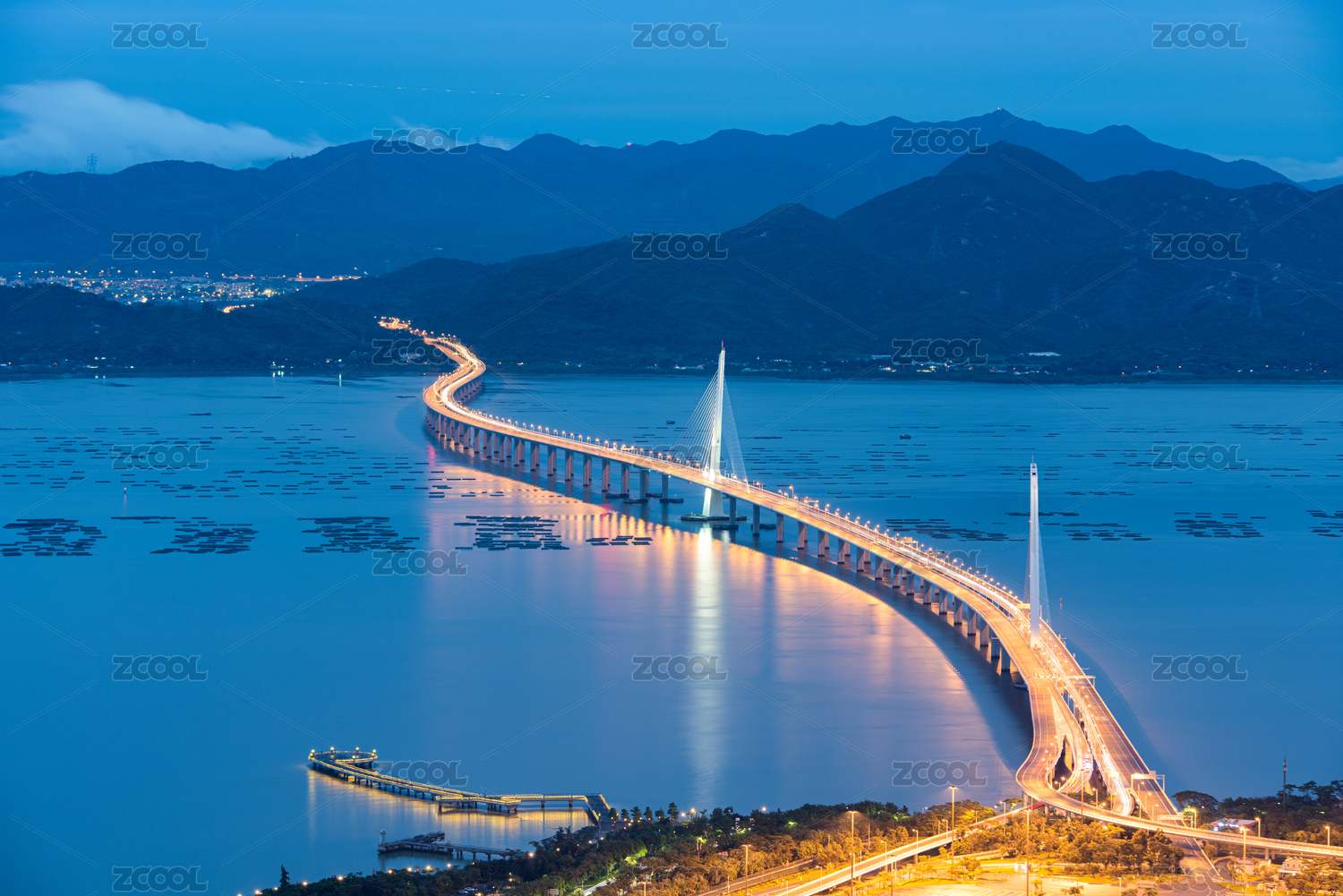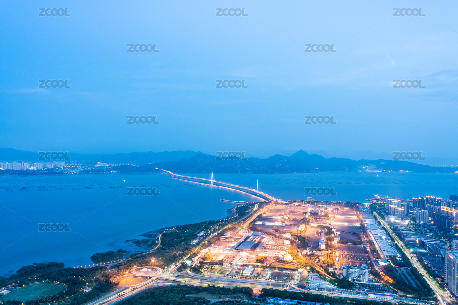 深圳南山深圳湾口岸深圳湾公园深圳湾大桥黄昏夜景
