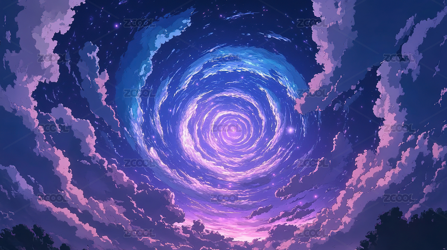 手绘卡通唯美的抽象艺术感螺旋的夜空插画