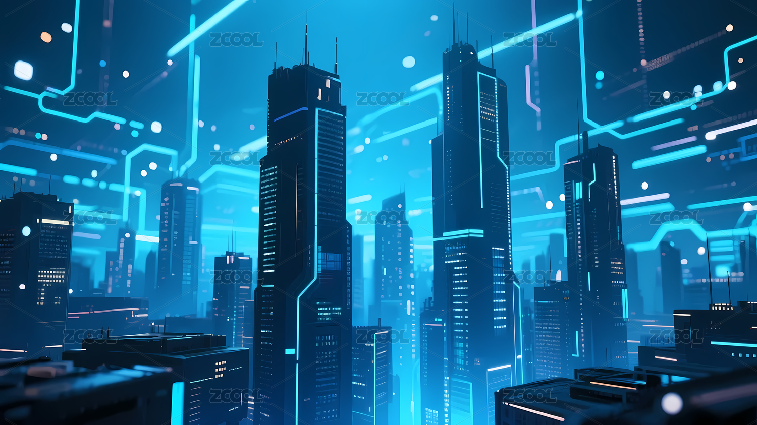 蓝色科技智慧城市科幻概念场景