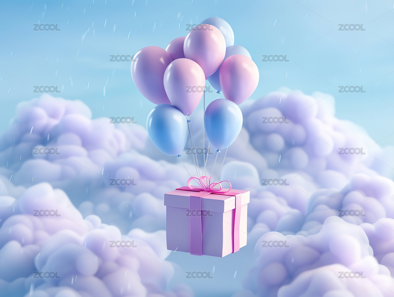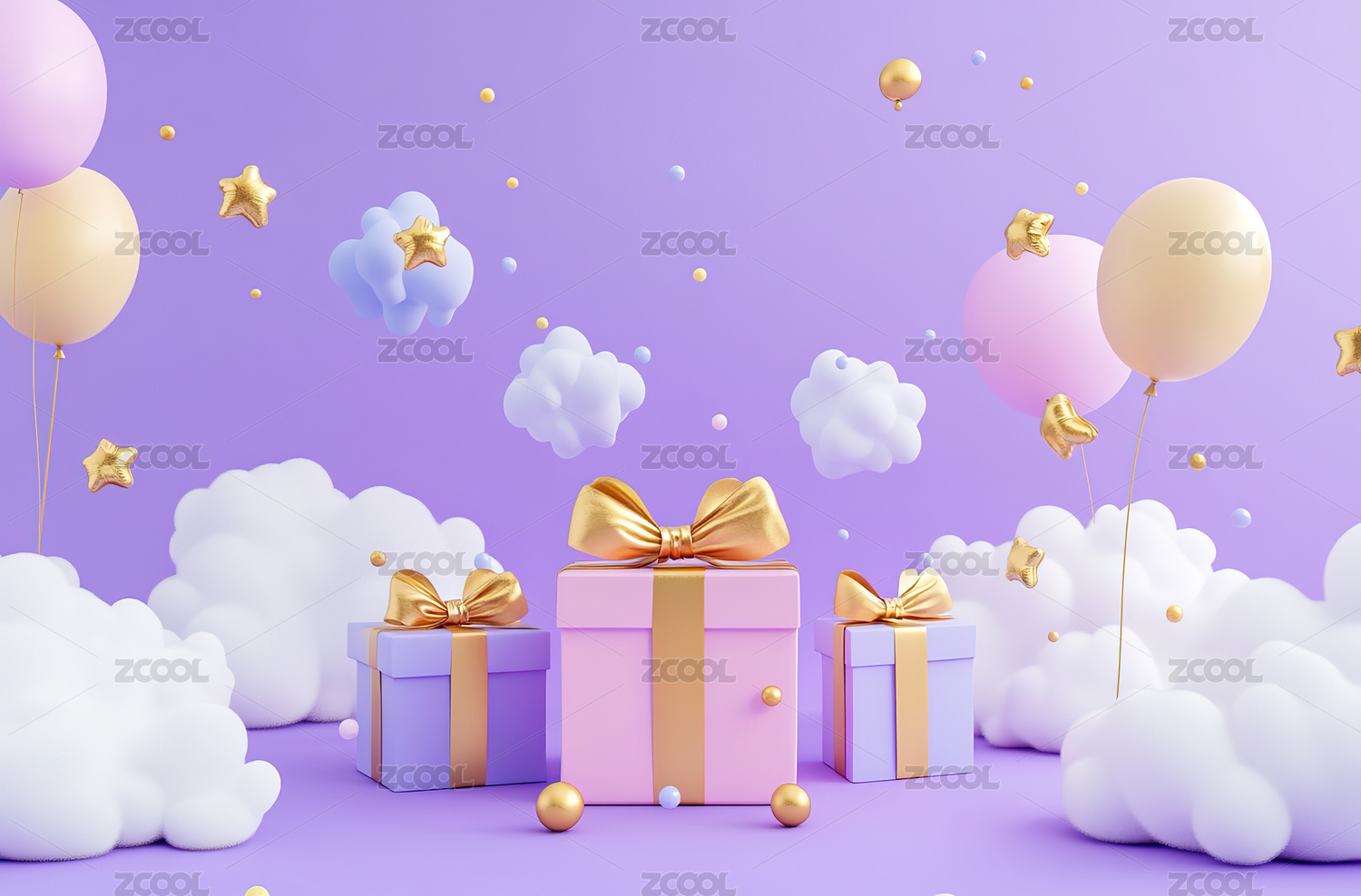 蓝色背景下的圣诞礼物和气球的特写镜头