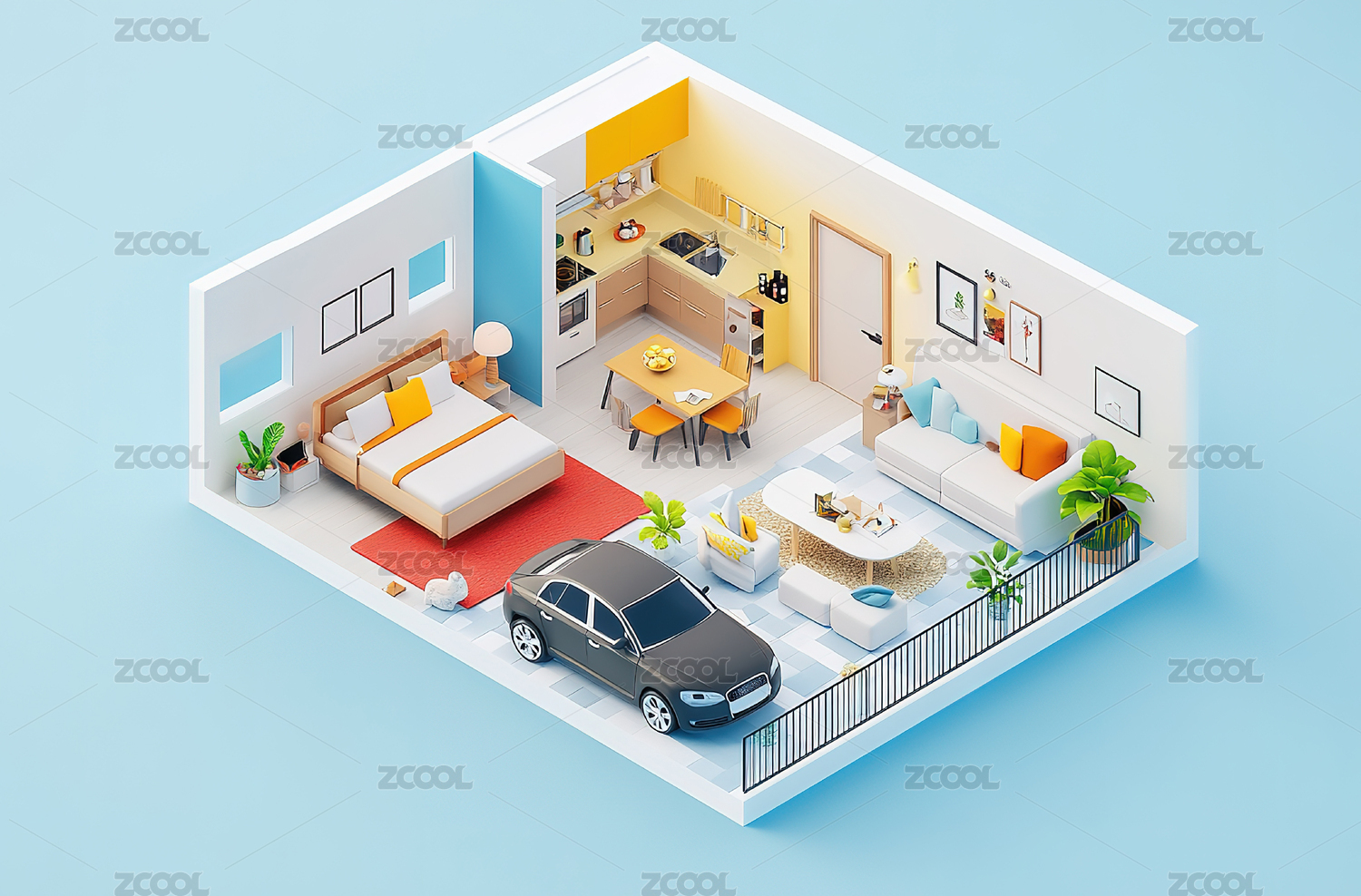 家具,插画,房屋,三维图形,住宅房间,沙发,公寓,生活方式,桌子,室内