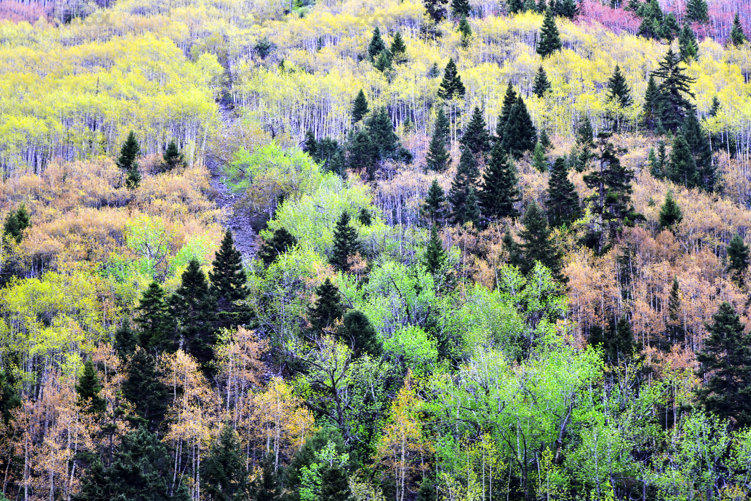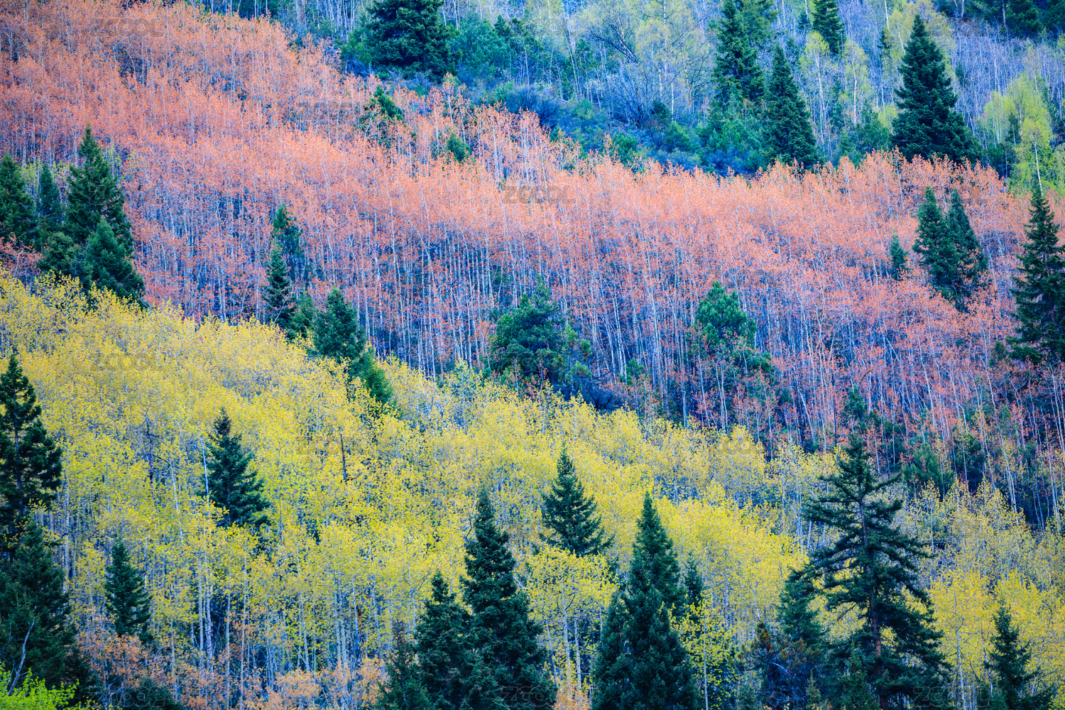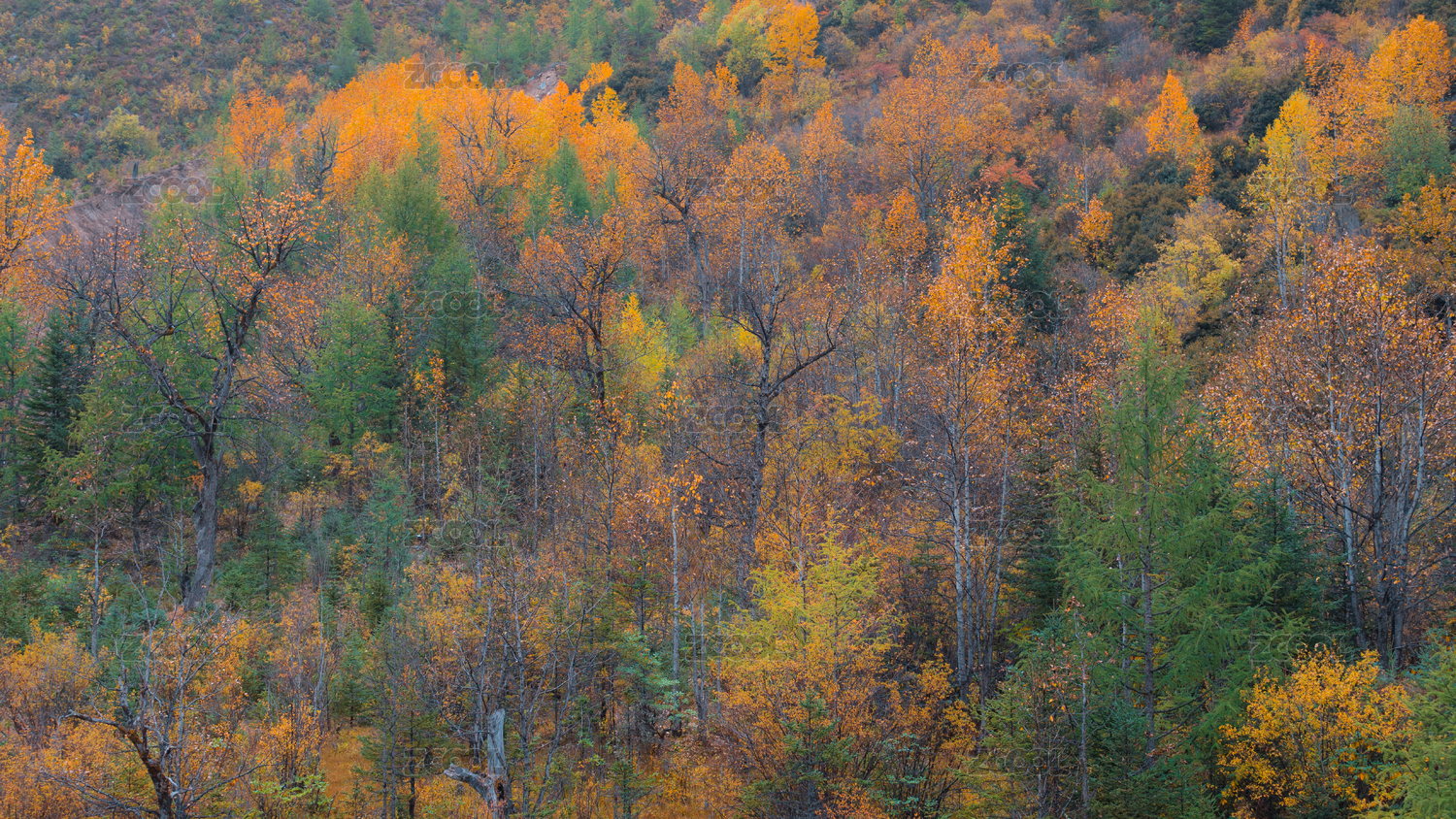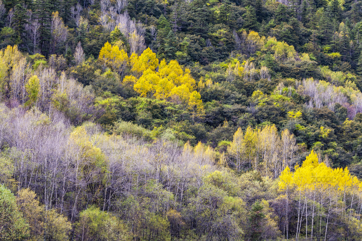 中国西藏波密县玉普乡米堆冰川景区的彩林