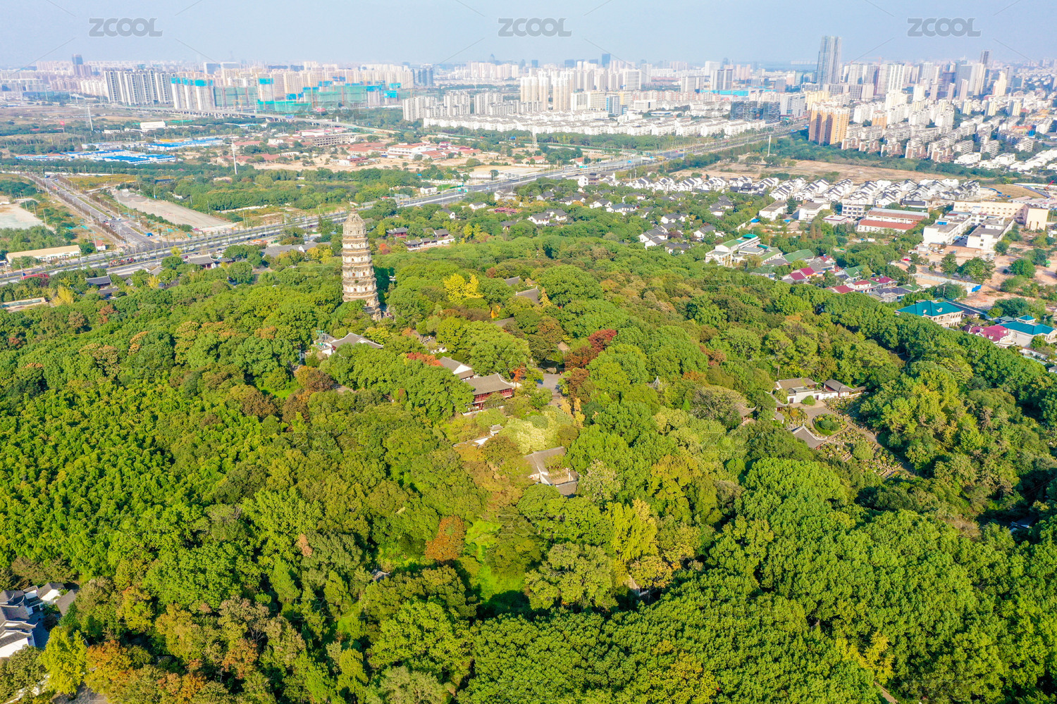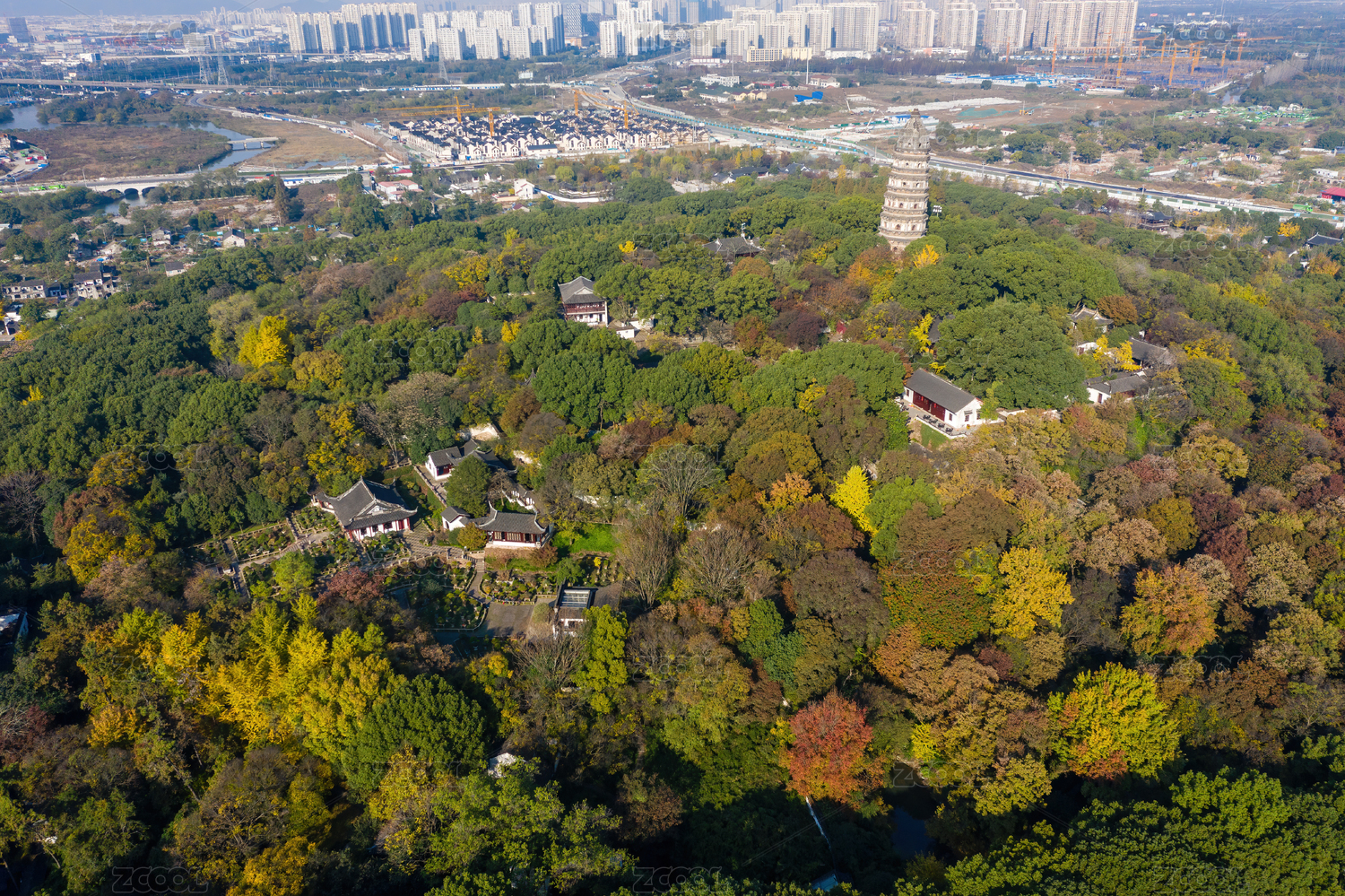 中国,江苏,苏州,虎丘山风景名胜区,虎丘,虎丘塔,斜塔,航拍,城市,景点