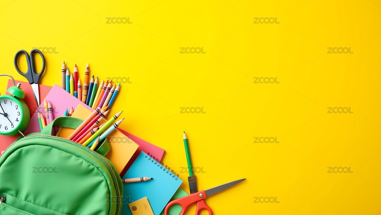 绿色书包与文具组合