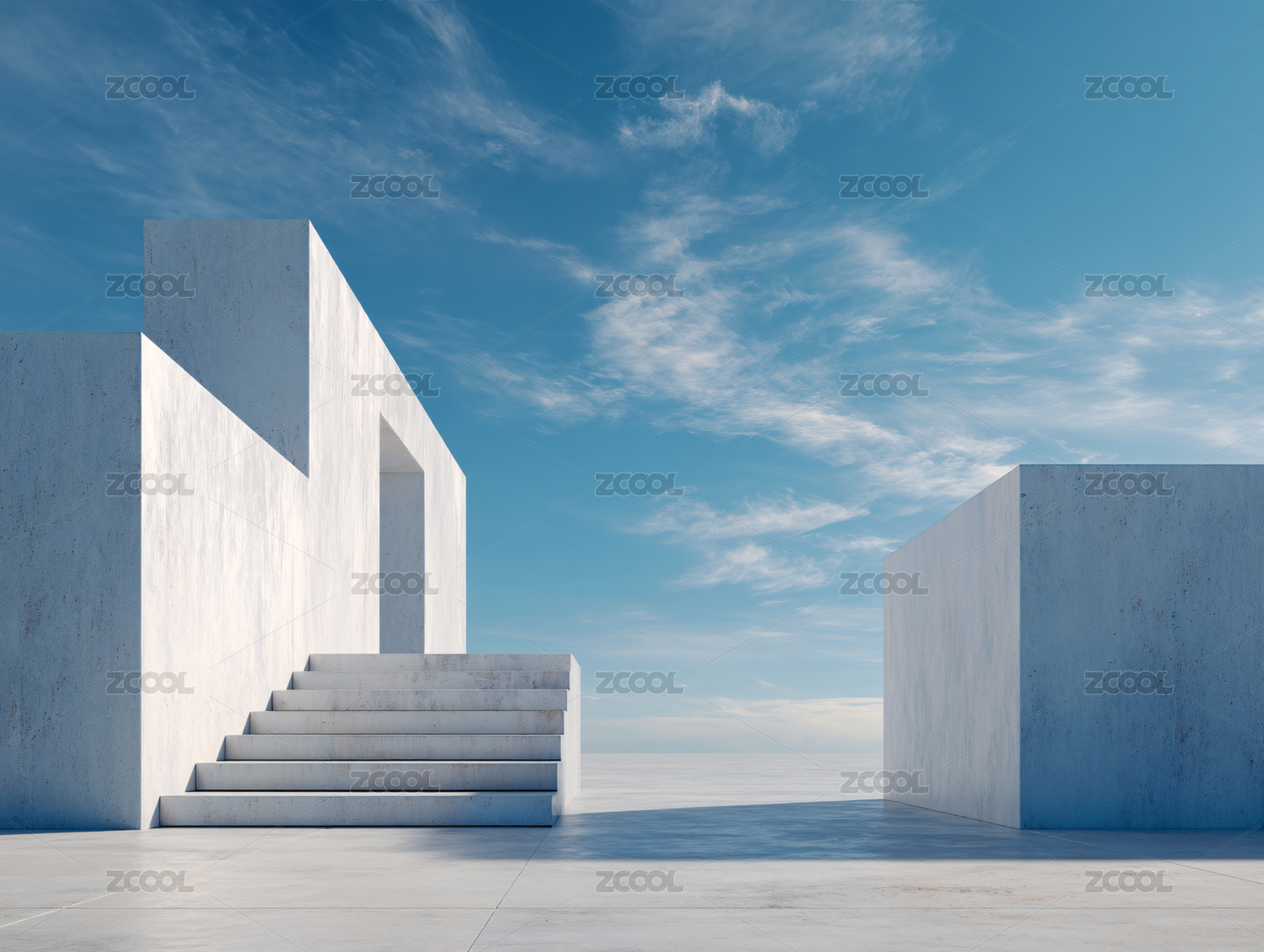 简单,白色,三维图形,现代,建筑,背景,未来,地面,插画,留白