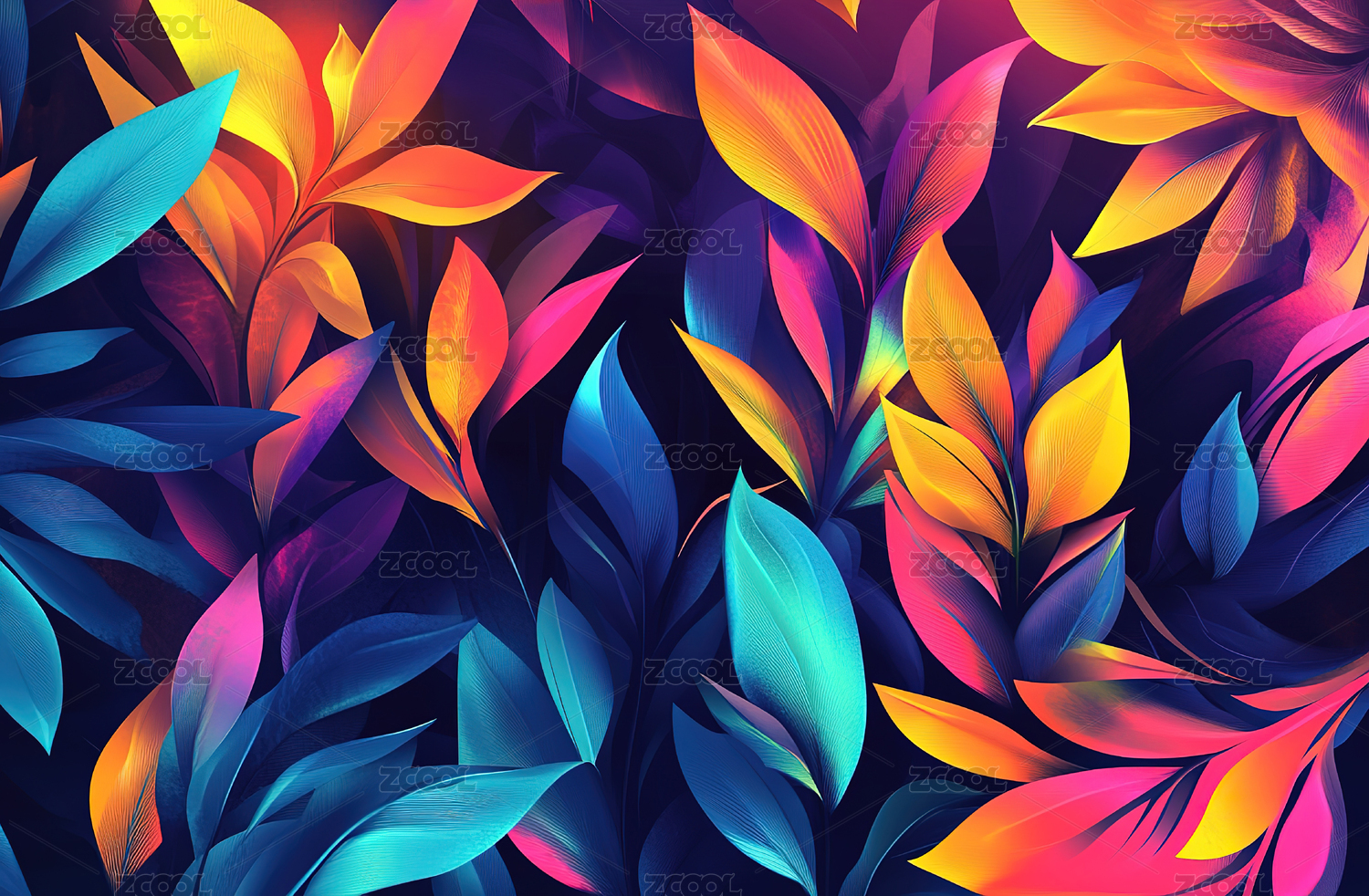 彩色叶片清新装饰图案背景