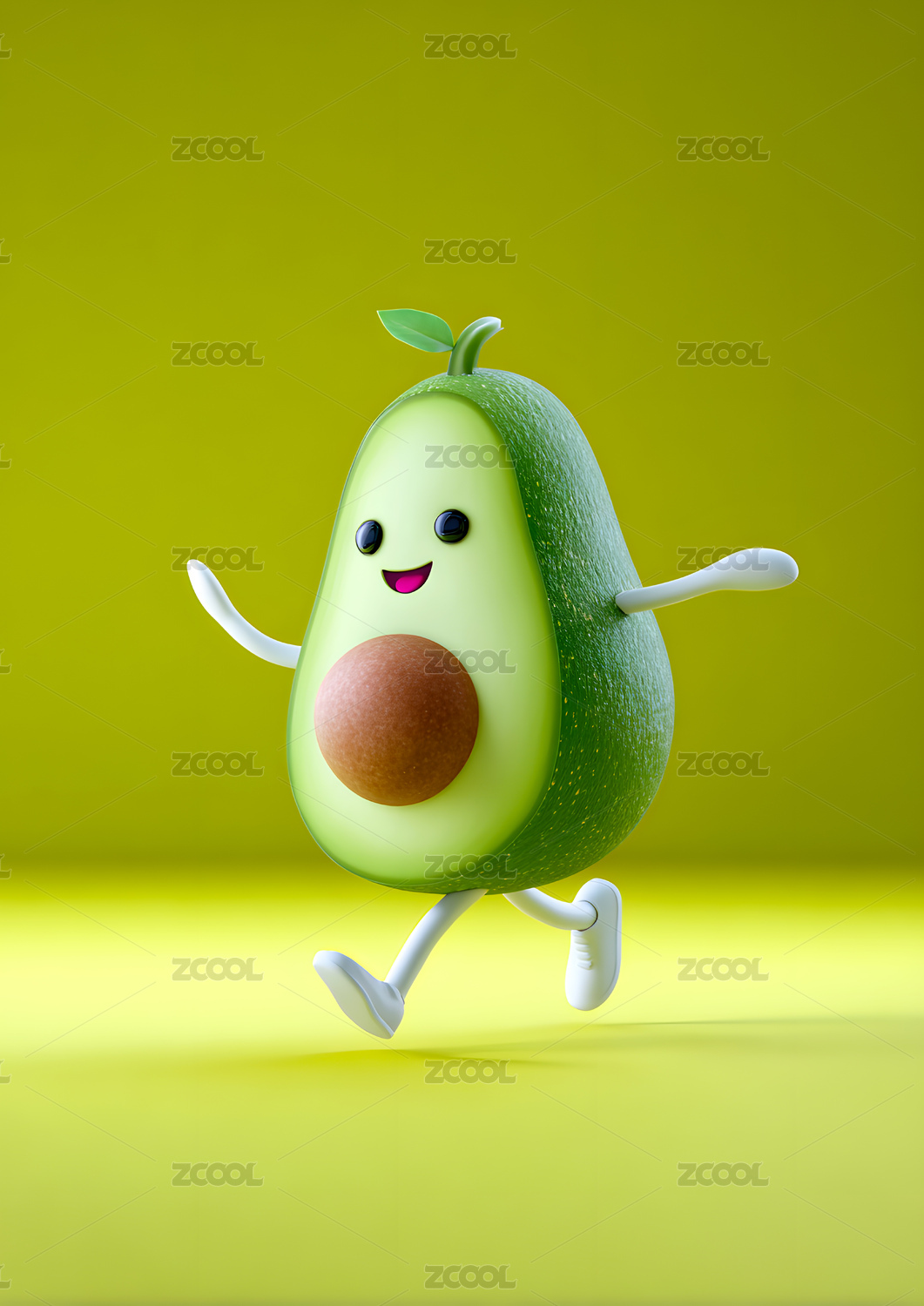 可爱的牛油果3D插图,展现健康水果的活力