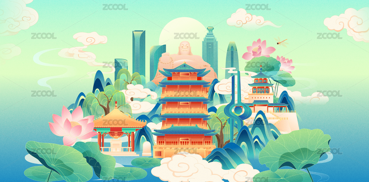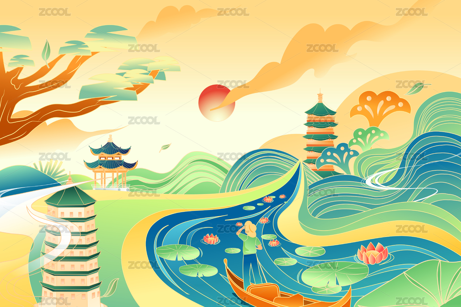 HEYYTGF2020,国潮,国风,仙鹤,祥云,插画,建筑,梅花,武汉,远山