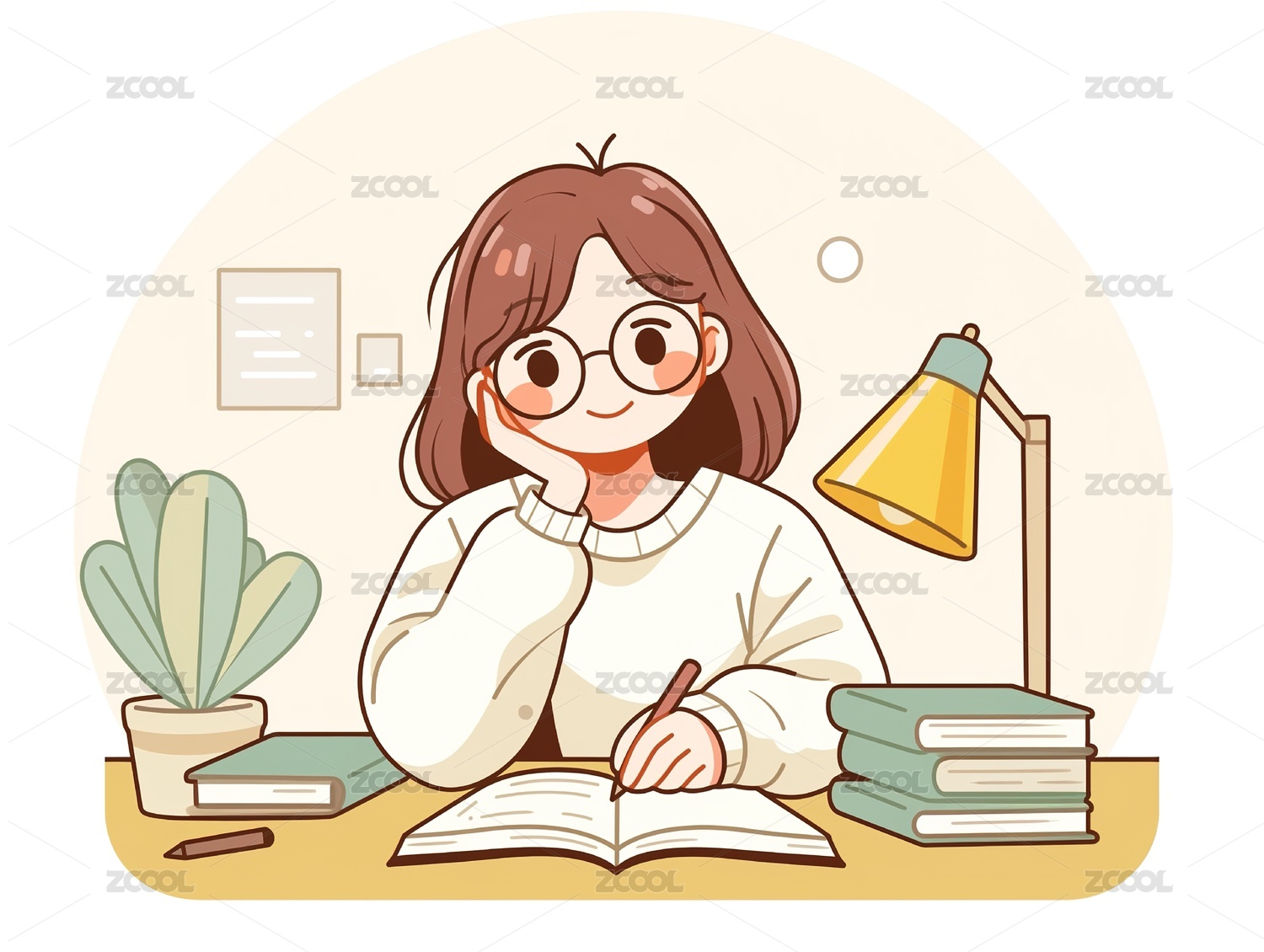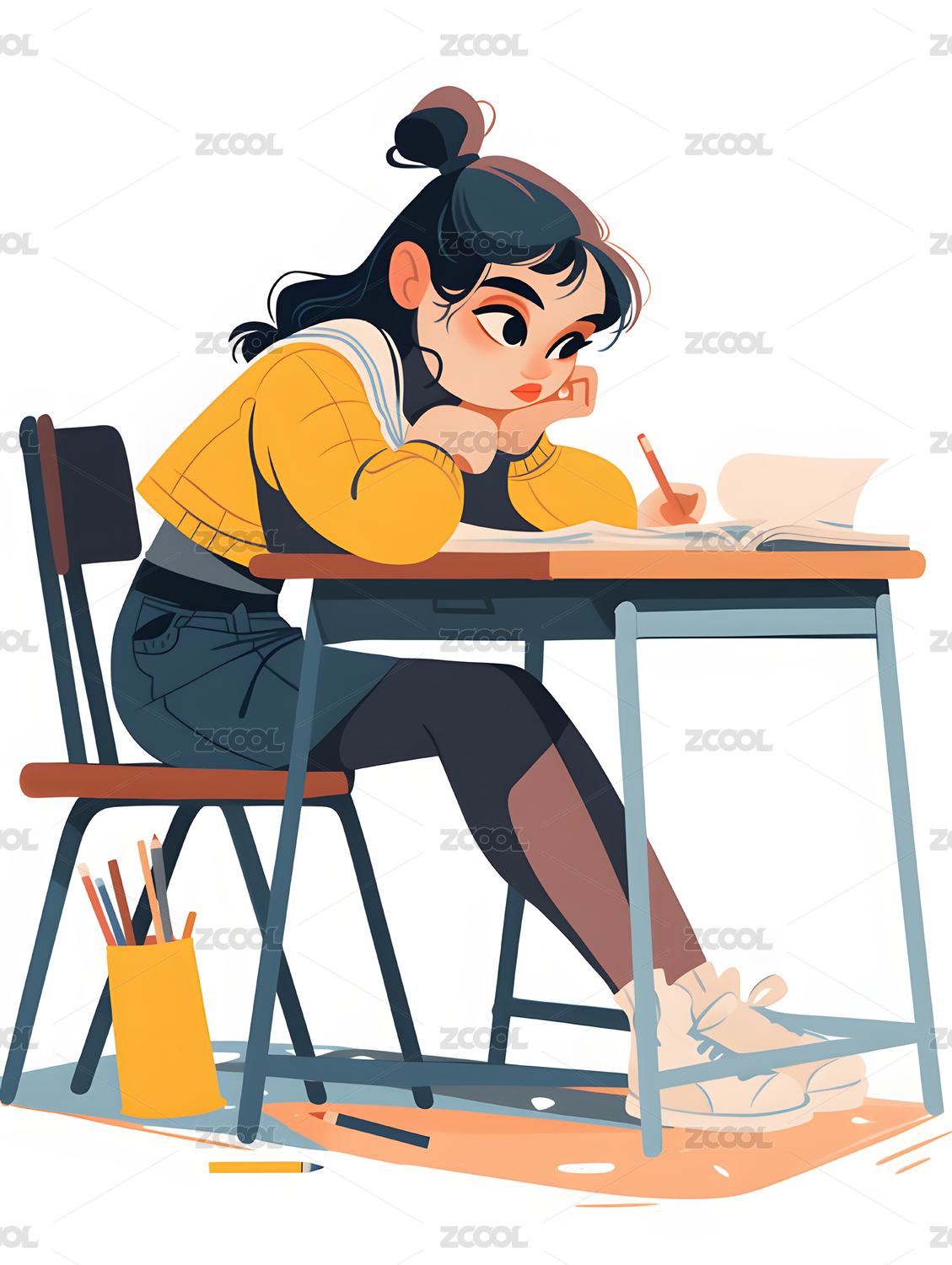 高考女孩在教室里托腮憧憬未来扁平风插画