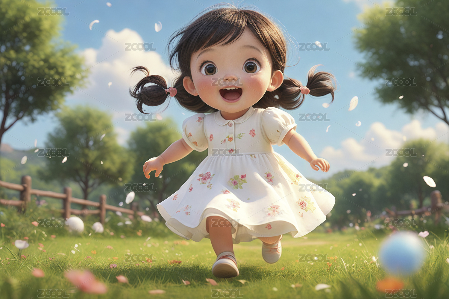 卡通,女孩,风筝,插画,可爱,微笑,田园,阳光,唯美,动漫