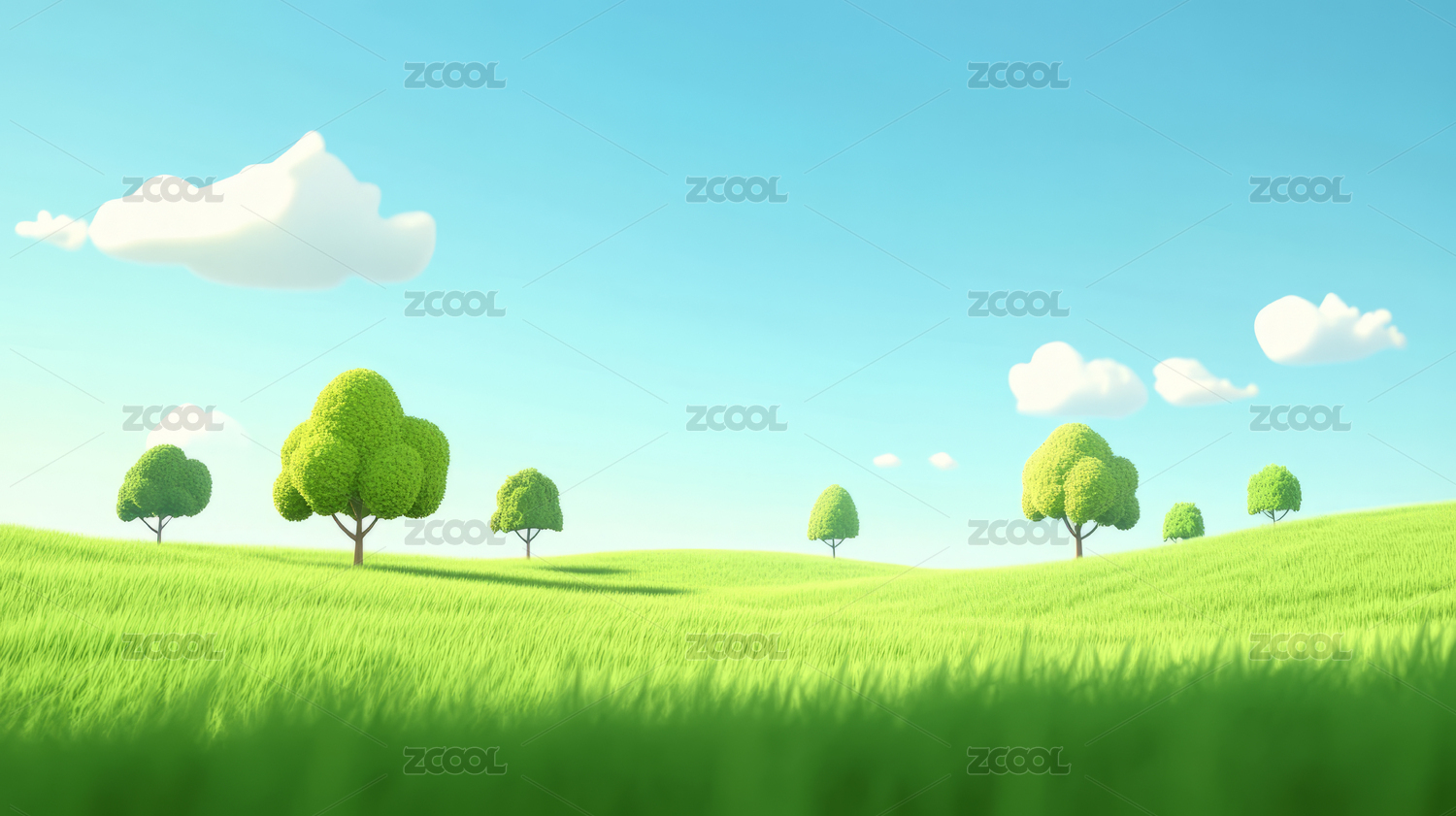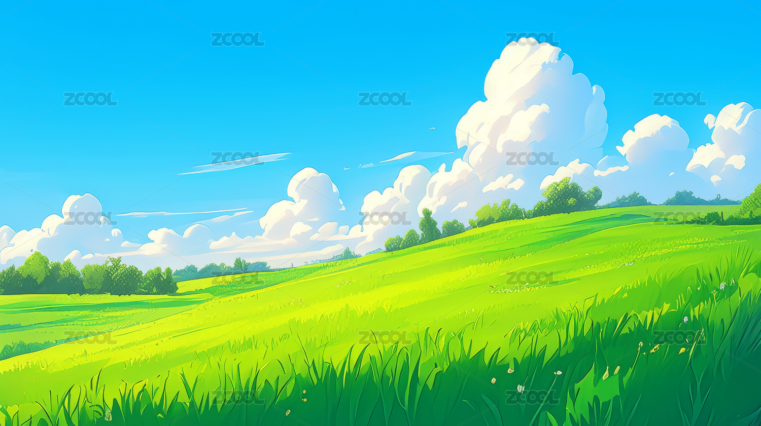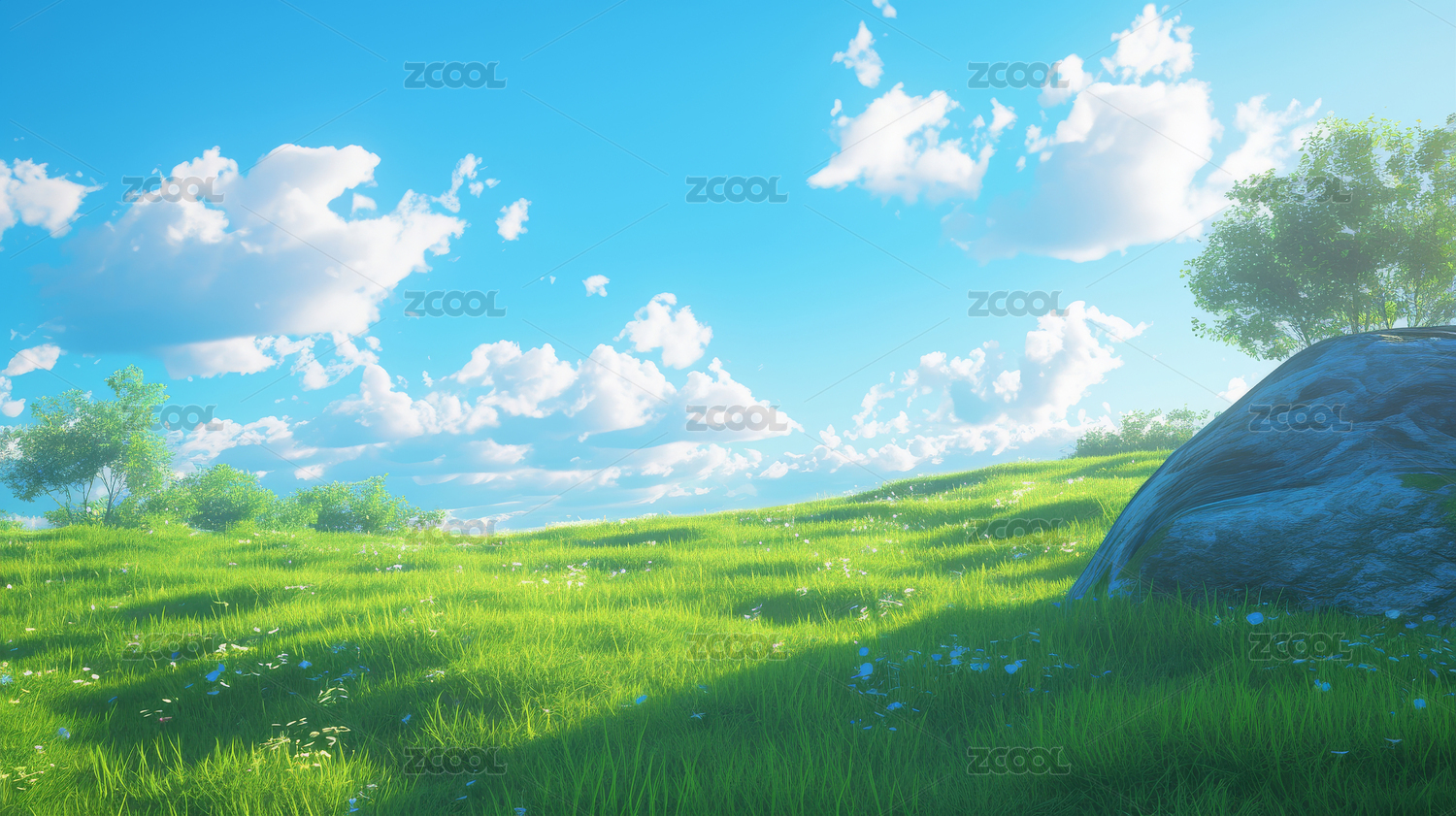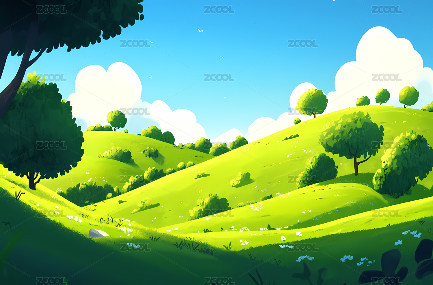 绿色山丘, 宁静, 和谐, 蓝天白云, 孤树, 青草地, 草甸, 自然风光, 晴朗天气, 开阔视野
