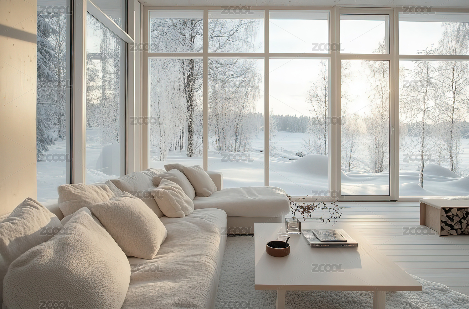 冬日雪景下的温馨客厅