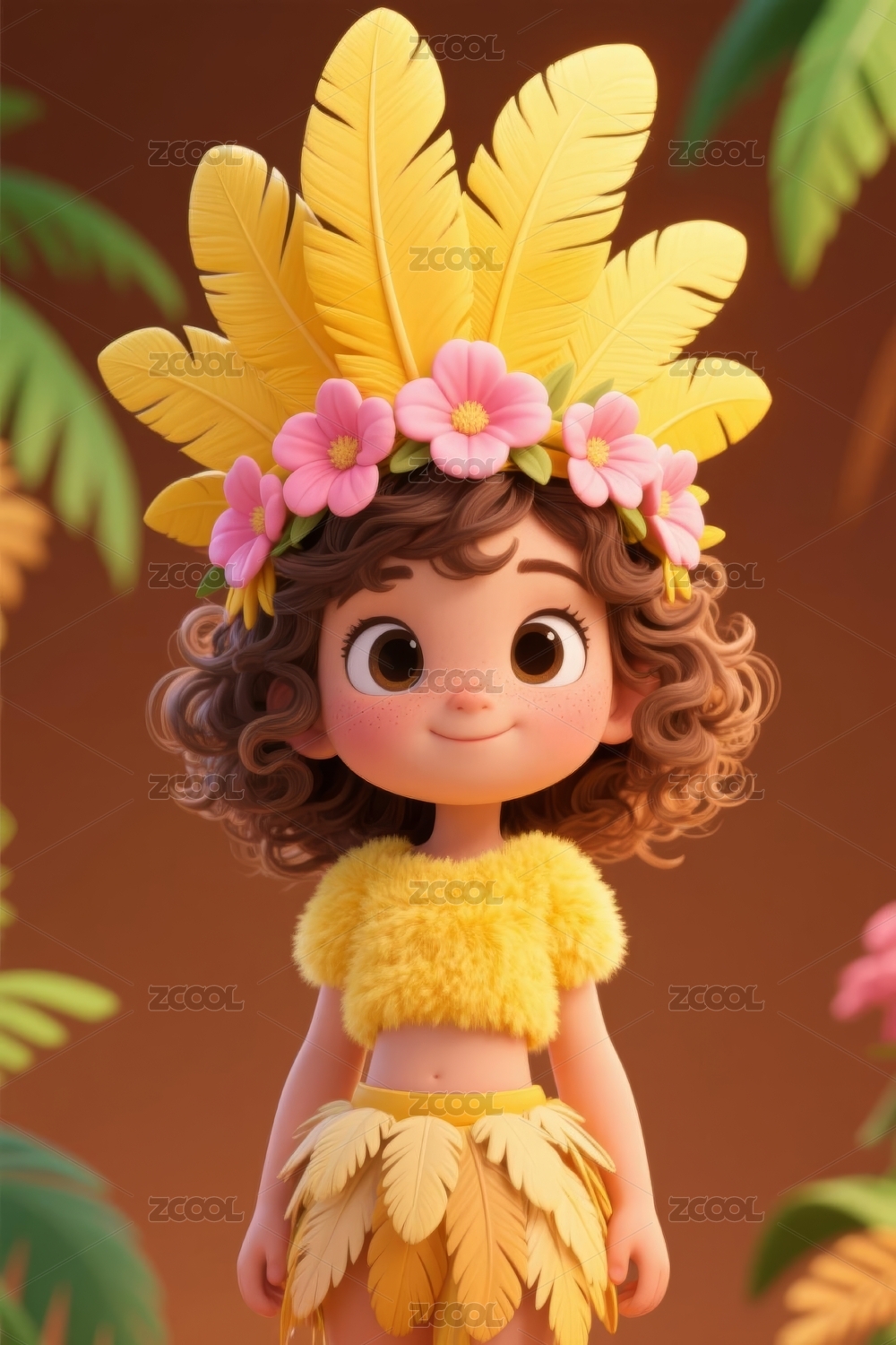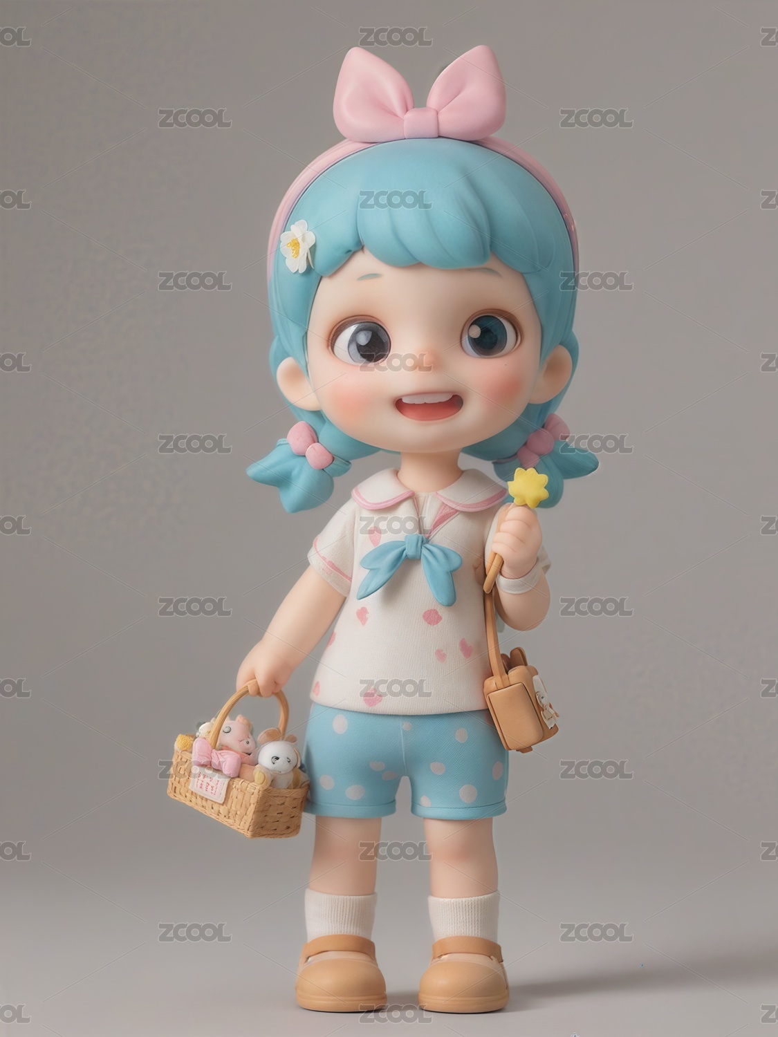 3D渲染可爱卡通女孩三八妇女节人物插画