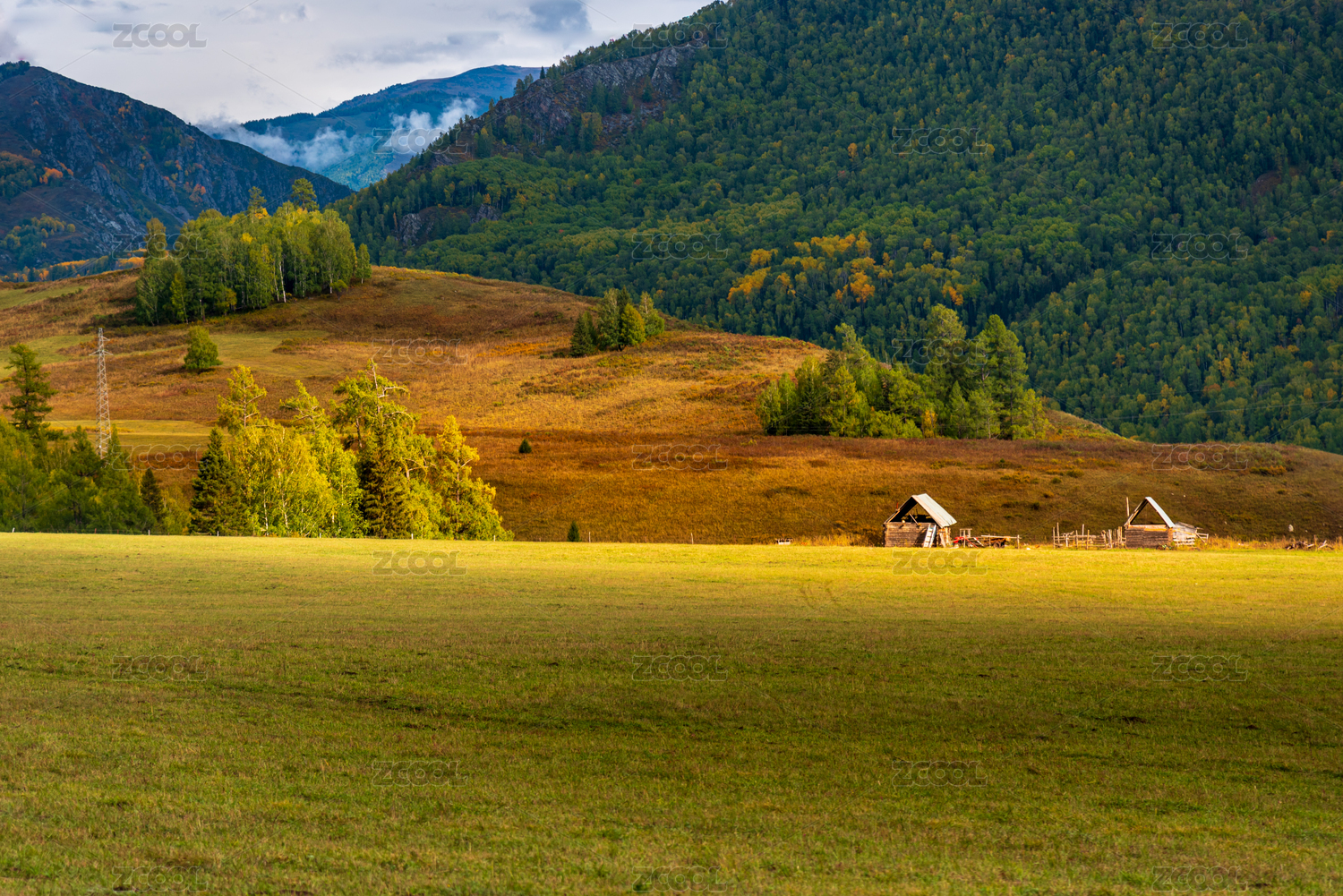 中国新疆阿勒泰地区禾木村附近的秋季景观