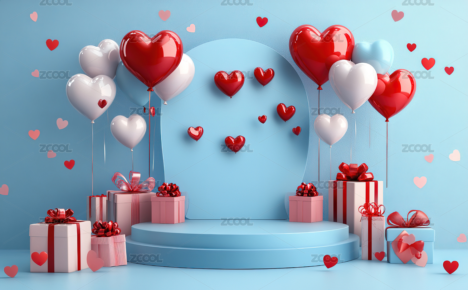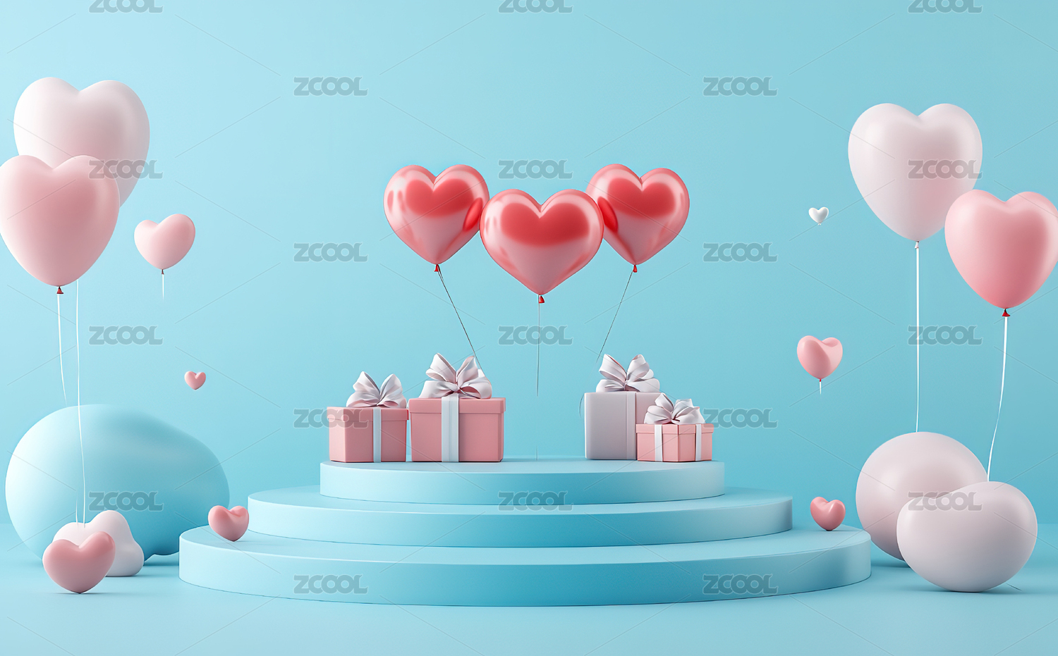 情人节礼物盒与心形气球