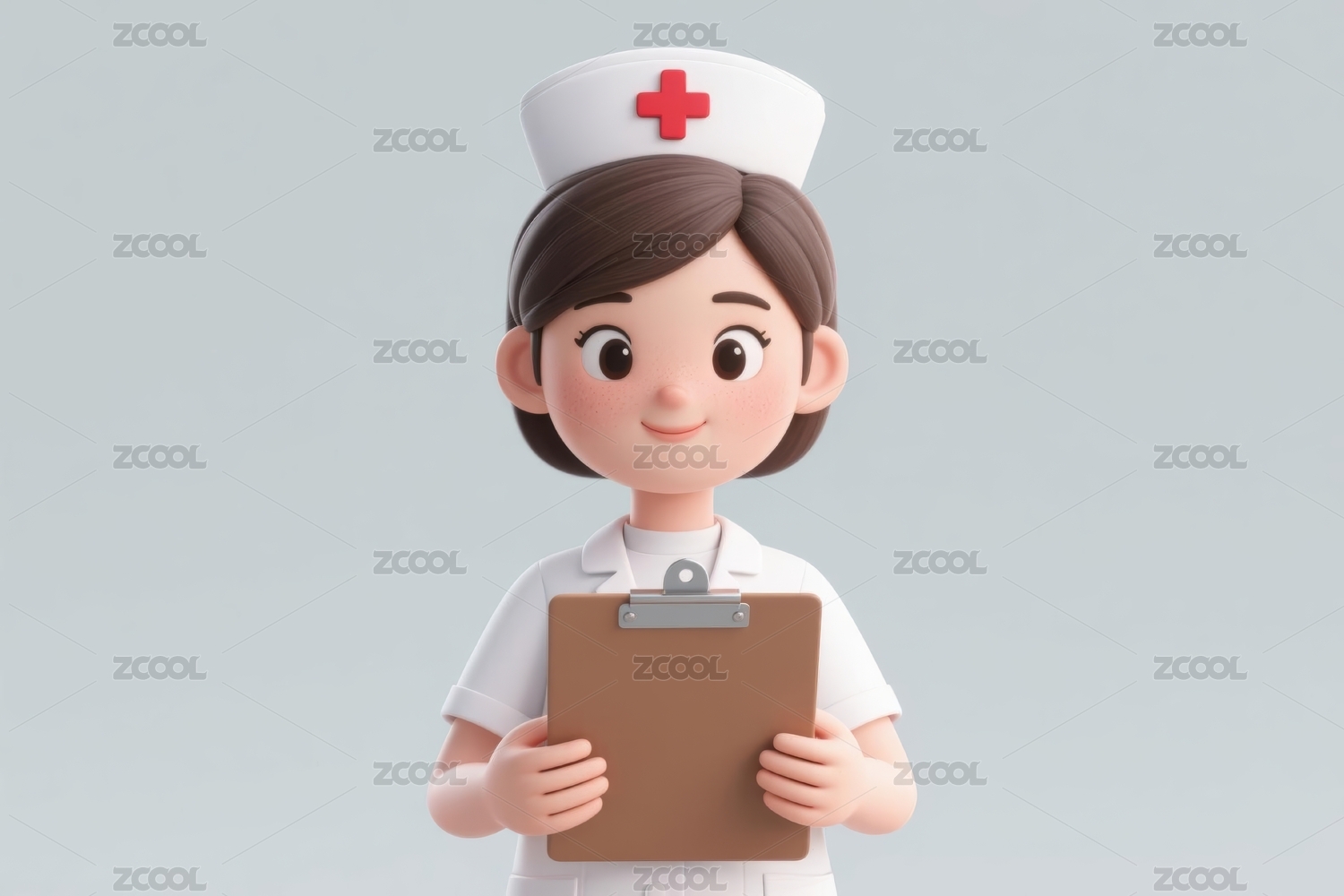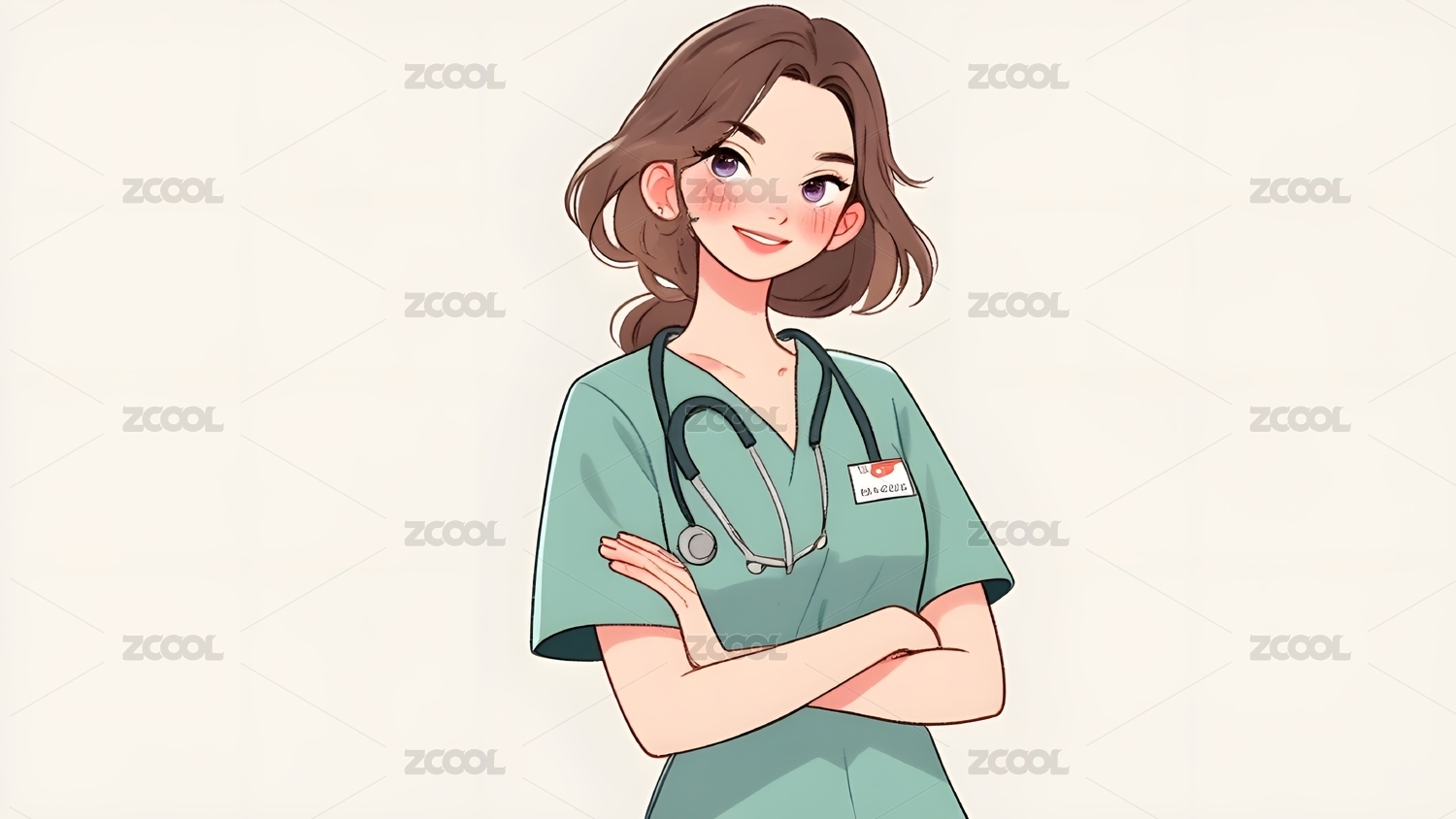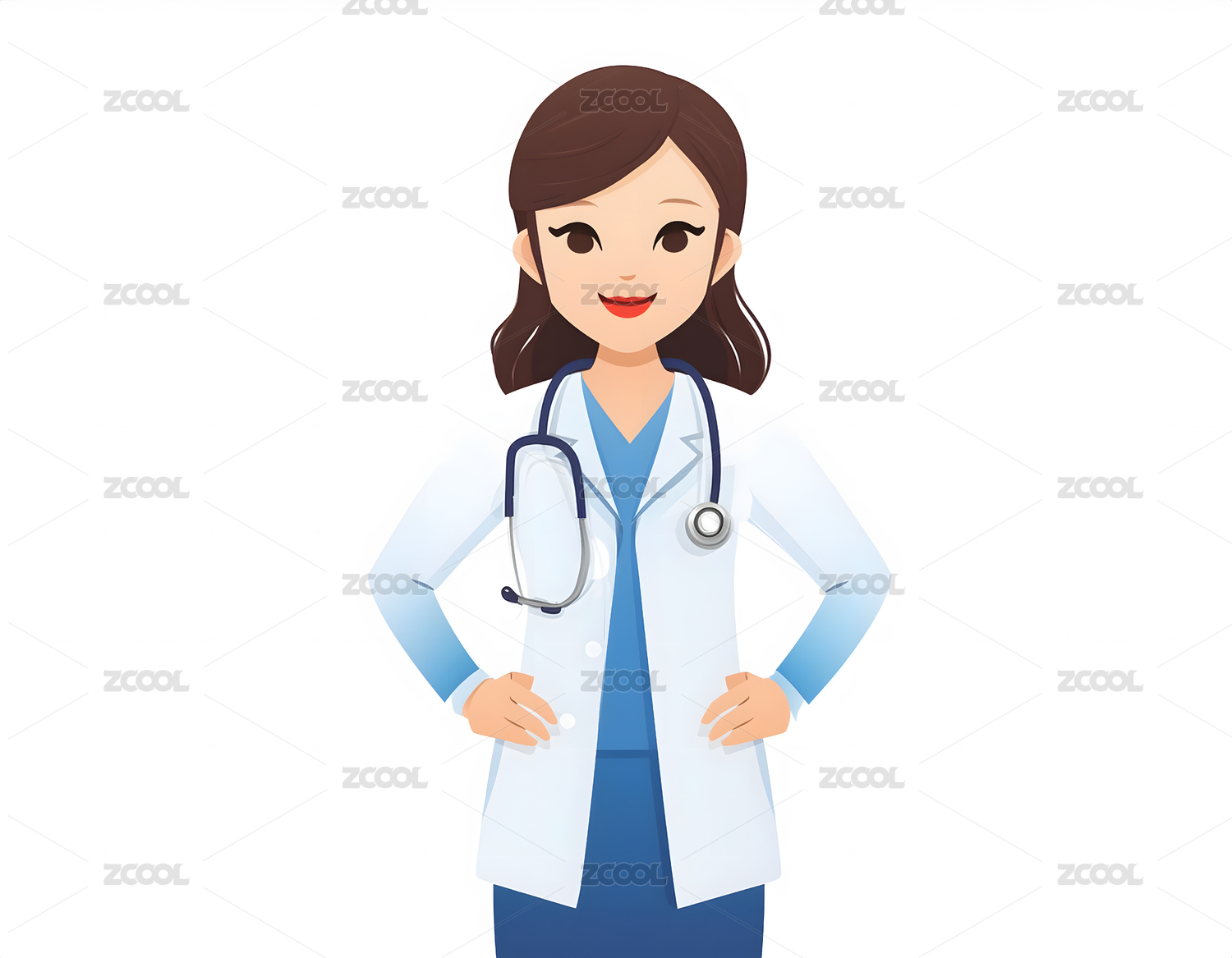 护士,女生,医疗,卡通,插画,制服,护士帽,听诊器,蓝色,背景