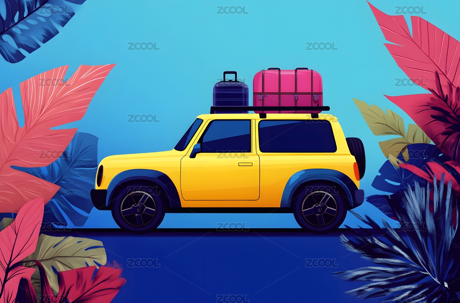汽车旅游假期自驾游夏令营户外出行放假背景